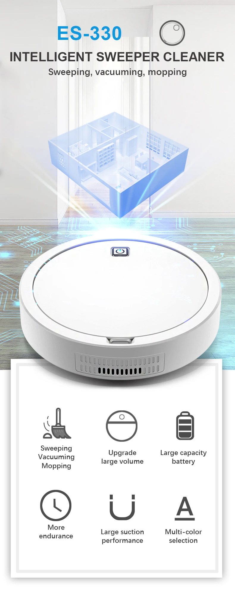 Особенности: 1. Большая площадь очистки. Данный Роботизированный пылесос может очищать большую площадь до 250 квадратных метров. 2. Система предотвращения столкновений. Умный, чтобы предотвратить столкновения и передний бампер, защищает мебель от повреждений. 3. Умное избегание падения. Индукционные ИК-датчики в нижней части обнаруживают высокий зазор, и это позволит избежать преград и автоматически изменить направление индуктором. Не упасть! 4. Система обнаружения местности OBS. OBS местности система обнаружения делают этот робот-пылесос распознать барьер и избежать столкновения. 5. 7 мм тонкий дизайн. Данный очиститель работает в узком пространстве, его можно очистить снизу от мебели и углов. 6. Низкий уровень шума 45 дБ, бесшумный низкий уровень шума 65 дБ, дает вам тихую среду, вы можете наслаждаться. 7. Мощное всасывание 2000 ПА легко адсорбирует пыль, волосы, бумагу, уменьшает загрязнение PM2.5. 8. 10 мм для скалолазания. Он имеет функцию лазания 10 мм, высоту подъема 15 градусов. 9. 3 фильтрующая пылесборник тщательно сметает пыль и мухи! 10. Светодиодный индикатор продукта, показывающий рабочий состояние. 11. Режимы зарядки: ручная зарядка 12. Подходит для цементного пола, керамической плитки, деревянного пола, короткошерстного ковра и т. д.