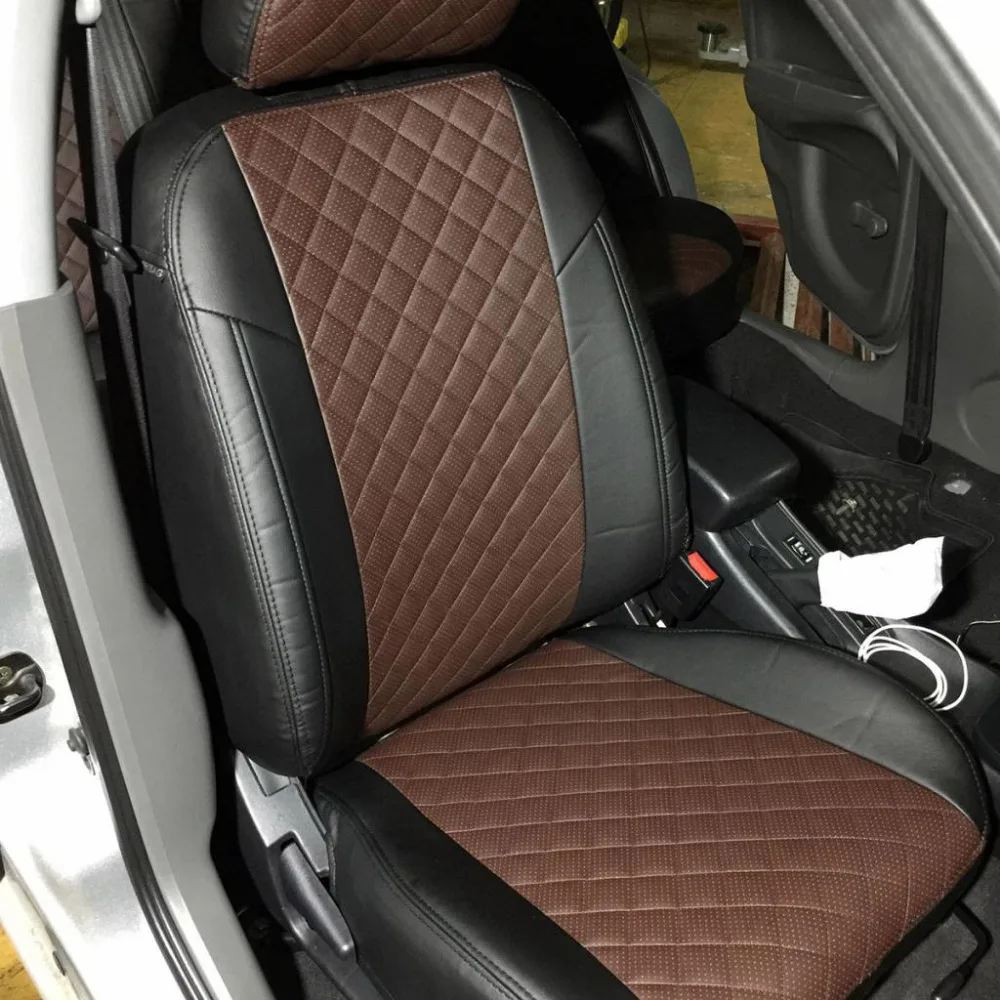 Фотографии представленные ниже являются демонстрационными и служат только для показа расцветки, качества материала, пошива и примера установки данных чехлов. Фотографии чехлов не всегда могут пренадлежать данной модели автомобиля.