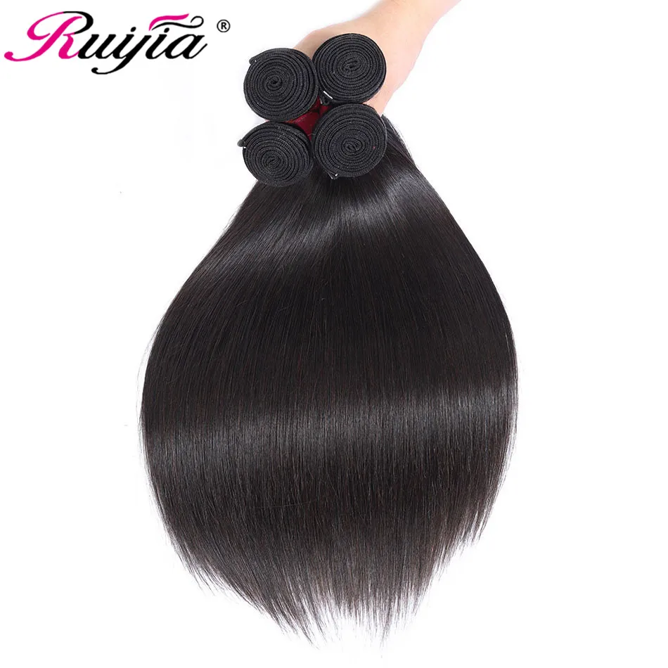 Перуанские прямые волосы Remy, 4 пупряди, человеческие волосы для наращивания, 8-30 натуральных цветов, двойной машинный уток RUIJIA, быстрая доставка