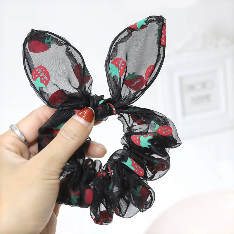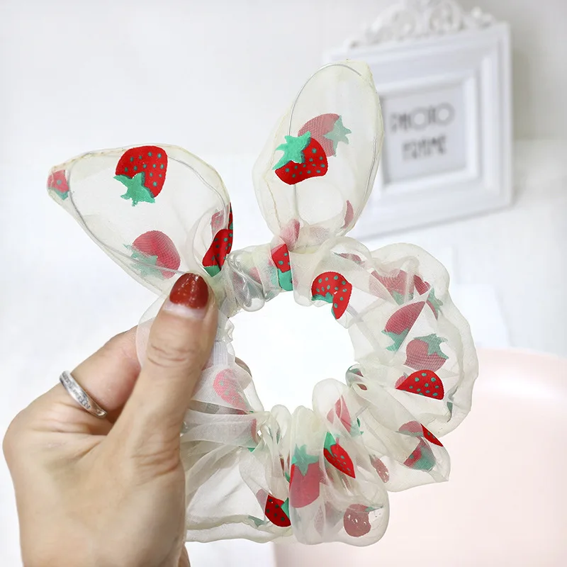 Лента для волос с кроличьими ушками и клубничным принтом, Резиновая лента для волос, ободок для волос, повязка для волос