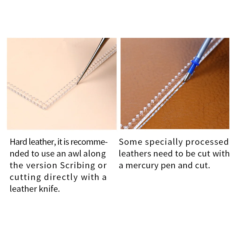 Акрил тяжелее крафт-бумаги и не легко скользить при рисовании линий. Прозрачный материал может видеть кожаный материал, чтобы избежать ошибок в резке. Его можно использовать повторно. Прошитые отверстия акрилового узора являются круглыми простроченными отверстиями с интервалом 4 мм.