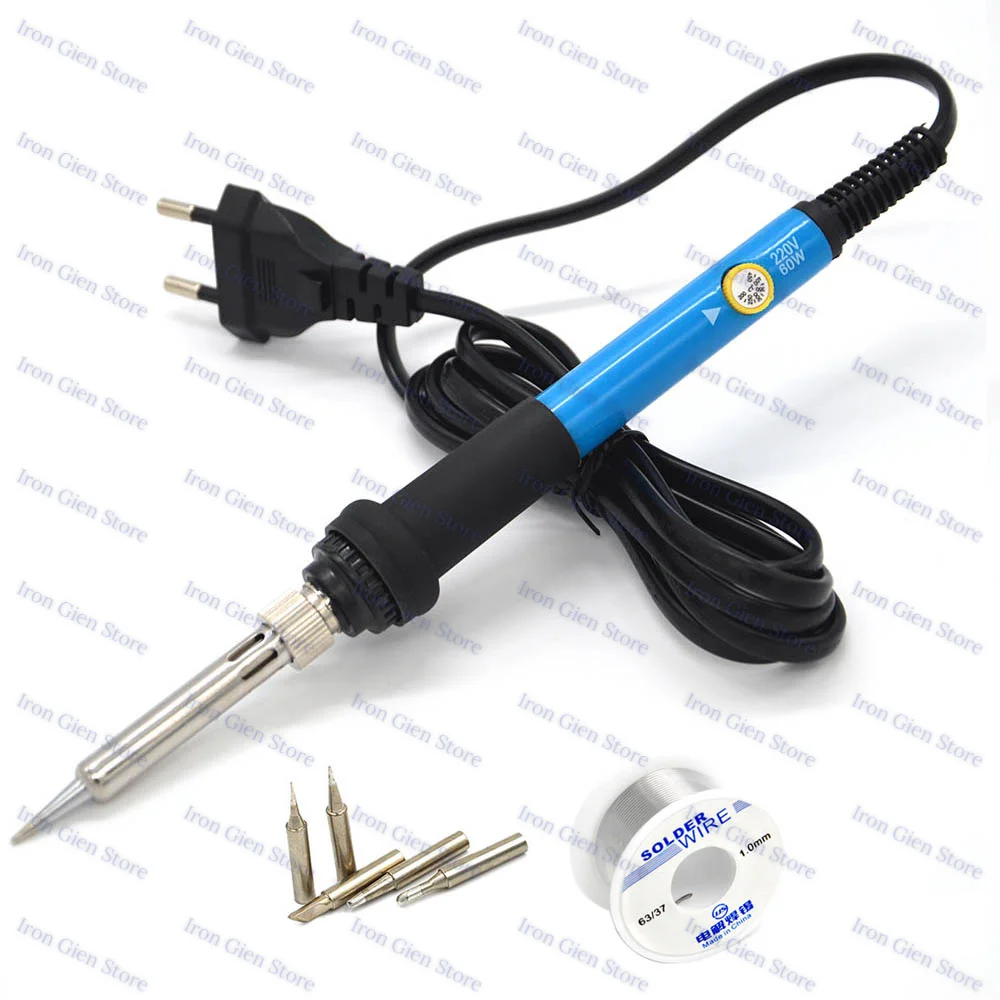 60 Вт 220 В Электрический паяльный комплект для утюгов Регулируемая температура с оловянной проволокой 5 железных наконечников сварочный пистолет инструменты для ремонта EU Plug