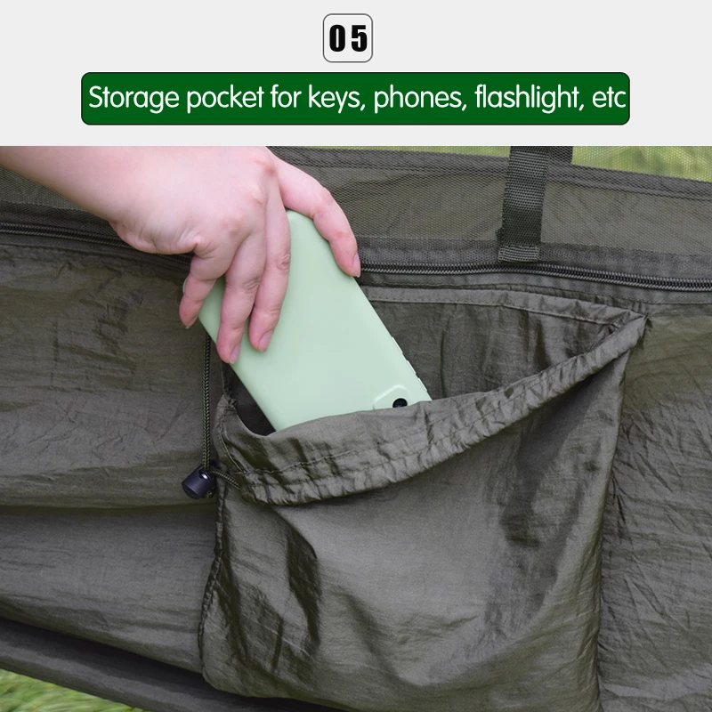 Материал гамака: 70D нейлон Спиннинг (также называется 210T нейлон спиннинг, Парашютная ткань) Сетчатый материал: полиэфирная сетчатая ткань Характеристики: 290*140 см Вес: около 730 г Нагрузка: 200 кг Упаковка: OPP пакет упаковка (Аксессуары продукта включают: 2 шт. просто Пряжка, 2 шт. крепеж, 2 шт. веревка для москитной сетки внутри и снаружи сумки каждого из них)