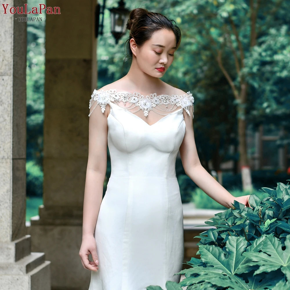 YouLaPan G04 мягкий кружевной цветочный край невесты накидка на плечо Кристалл бисера свадебный плащ шали с лентами Вечерние