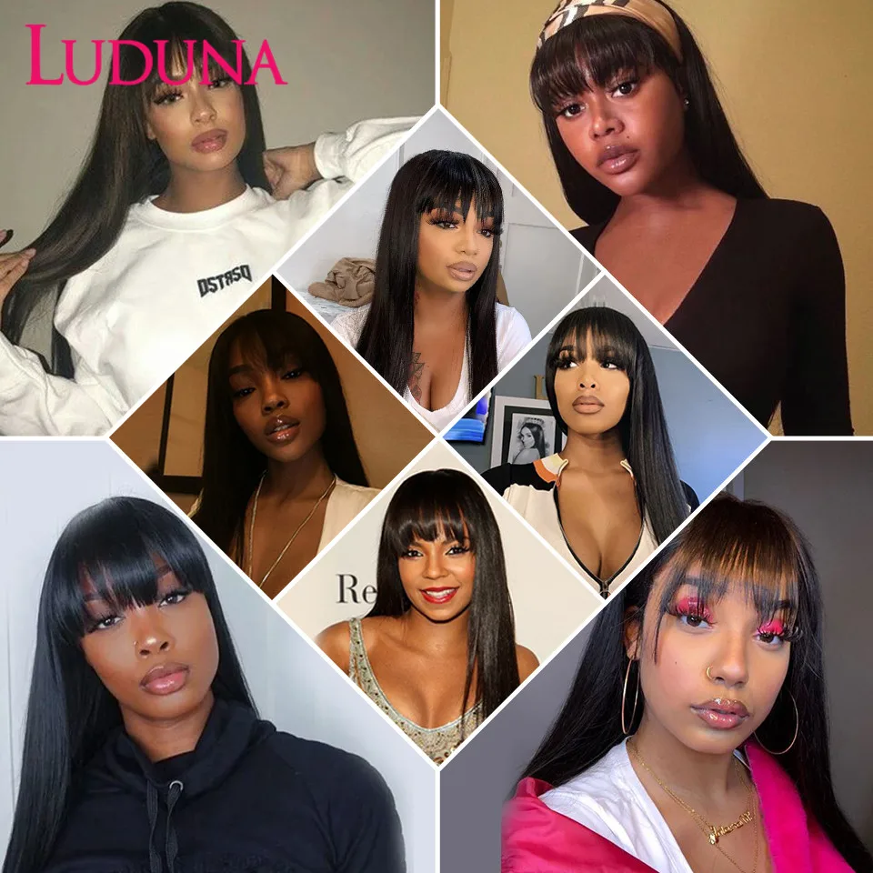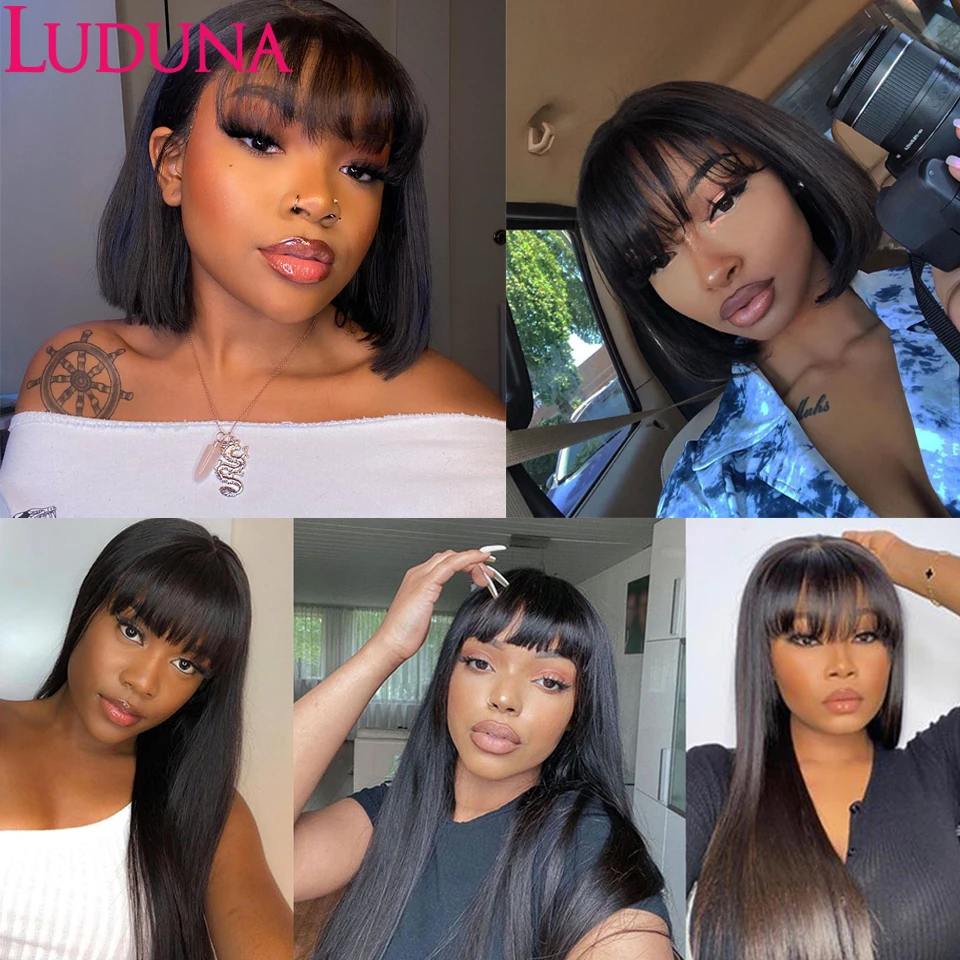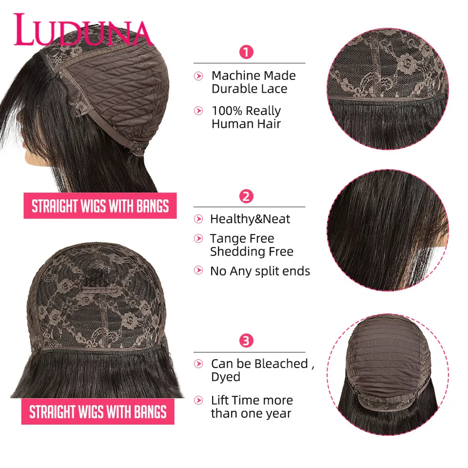 Luduna Straight Human Hair Wigs With Bangs Brazilian Human Hair Wigs For Women 150% Density Remy Hair Glueless Wig With Bangs