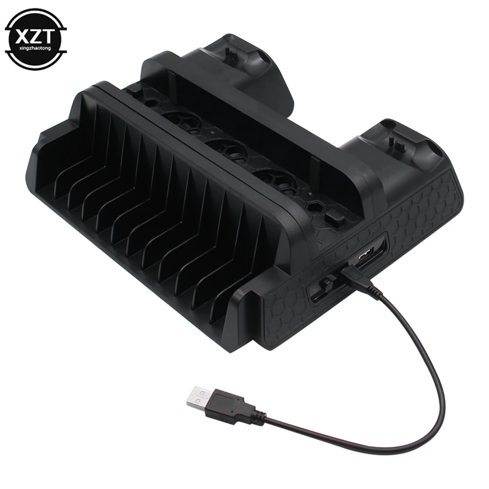 Описание товара: ◆ Как использовать: Поместите этот продукт на платформу drafty, затем поместите консоль PS4 в нее вертикально. (Примечание: Поместите переднюю консоль PS4 с той же стороны своего порта Micro-USB. Пожалуйста, используйте прилагаемую пластиковую часть для сборки консоли PS4 Slim, не нужно для консоли PS4 и PS4 Pro) ◆ Характеристики продукта: * Режим: TP4-882 * Материал: АБС-пластик * Цвет: черный * Входное напряжение: 5 В постоянного тока * Выходной ток: 500 мА * Питание: USB 5 В (Подключите прилагаемый usb-кабель к консоли) * Ток: максимальный ток для индивидуального контроллера составляет до 800 мА, когда контроллер заряжается, средний ток составляет 400 мА, когда два контроллера заряжаются (вентилятор не работает) * Максимальная скорость вентилятора: 5000 ± 10% PRM * Макс воздуха Выход: 12,6 CFM • Время зарядки: 2,5 до 3 часов (2 контроллера зарядки одновременно) * Продукт Размеры: 9,8x8,07x2,7 дюйма/250x205x68 мм * Вес: 475 г * Посылка Вес: 616 г ◆ Примечание: (1). Этот продукт не может быть помещен в огонь. (2). Не может использовать коррозионную жидкость для очистки этого prouct. (3). Не может разобрать продукт самостоятельно. (4). Не бросайте ничего в отверстие для рассеивания тепла (особенно металлическое устройство), что сделает Короткое замыкание в основании вентилятора, тем самым нанося ущерб изделию. ◆ Посылка включает: 1 x вертикальная подставка серии PS4 с охлаждающей подставкой 1 x зарядный кабель