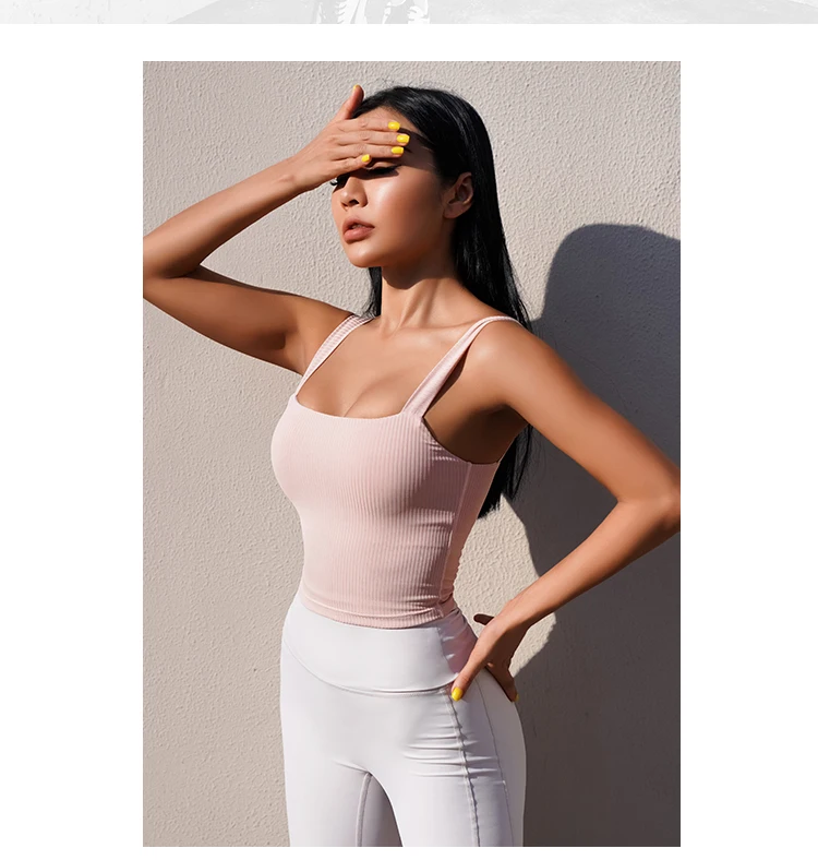 U-образный вырез горловины, съемная подкладка Расширяют плечевые ремни, Плечи обладают насыщенной эластичностью, Мягкая тянущаяся ткань, специально подобранная для йоги. Большая открытая спина, демонстрирующая сексуальную и очаровательную спину, Подтягивающий эффект, комфортно облегает кожу. Пусть вы будете безудержны,