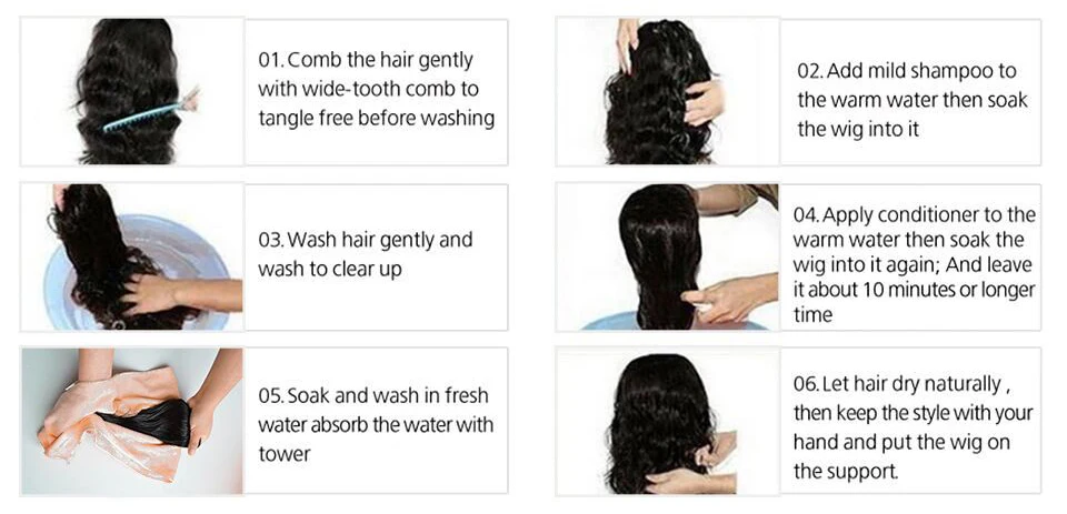 2. Как мыть парик? Пожалуйста, отнеситесь с париком как с вашими волосами. Распылите немного воды или масла, чтобы избежать сухих проблем, и Вымойте его дважды в неделю, по крайней мере, можно сделать парик длительным.