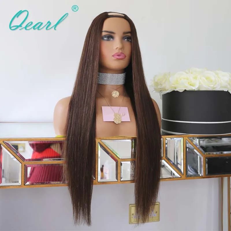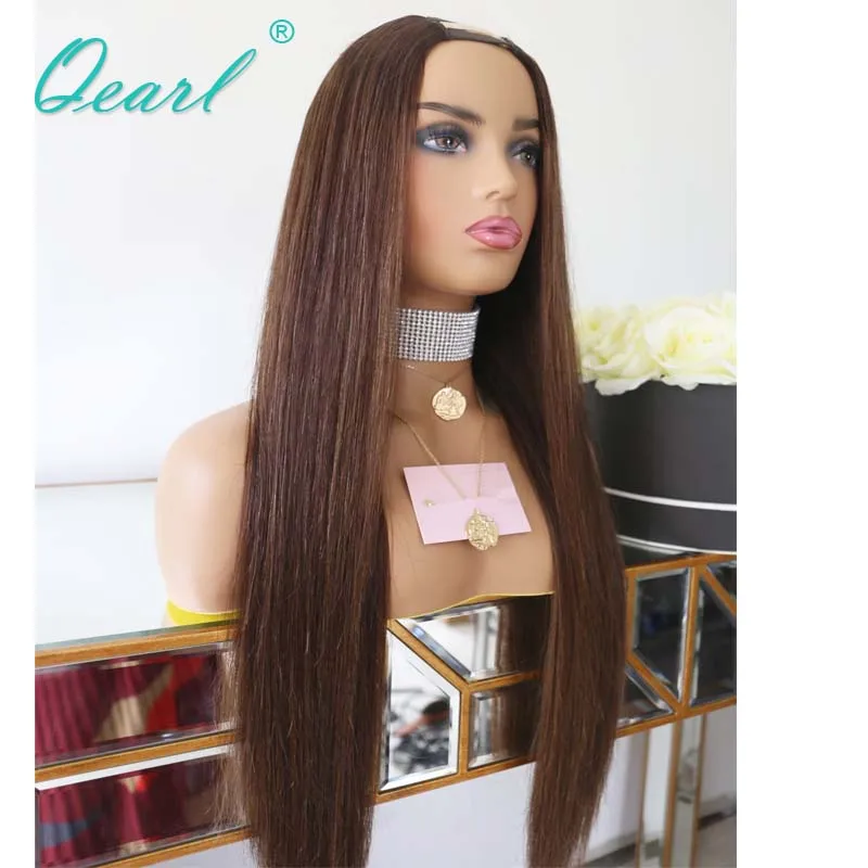 Парики из натуральных волос коричневого цвета Auburn, прямые u-образные парики для женщин, бразильские волосы Remy, 2x4 150%, плотность 180%, Qearl