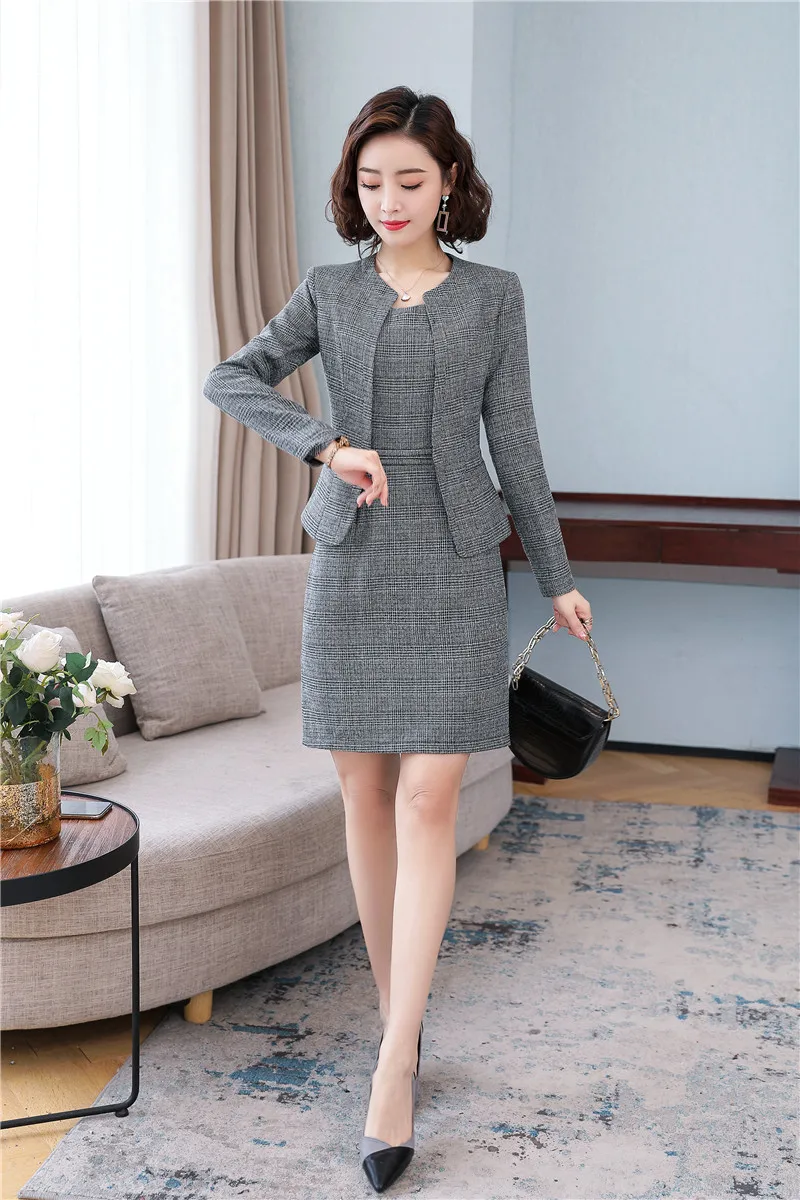 Посылка входит: Деловые рабочие костюмы-1 шт.(Куртки пальто + платье)
