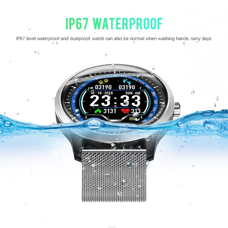 Водонепроницаемая технология IP67: поверхность этих умных часов очень водонепроницаемая. Его не нужно снимать, когда идет дождь, потоотделение, дайвинг, плавание, мытье рук или стирка в повседневной жизни. Он очень подходит для любителей спорта и активного отдыха.