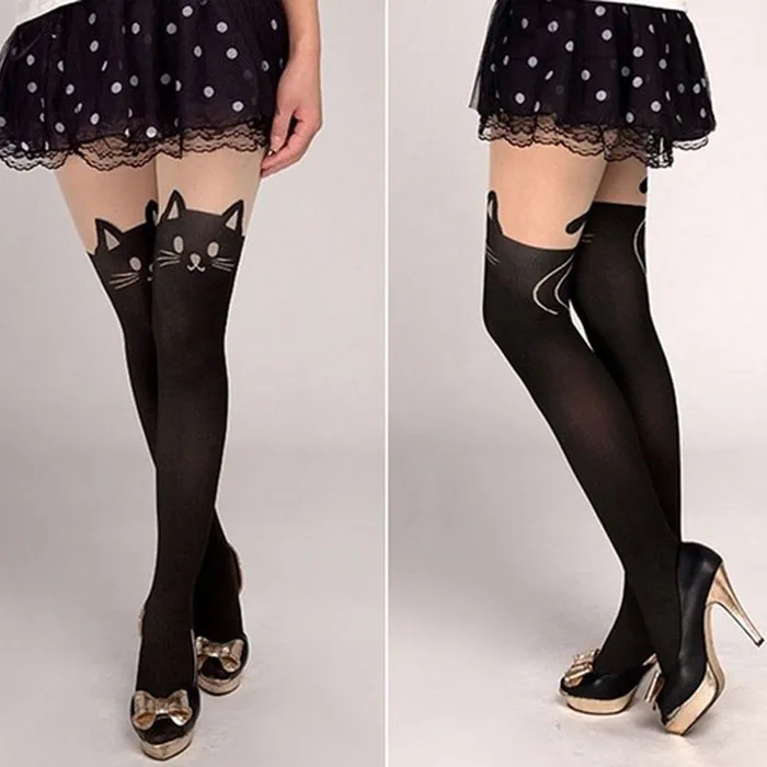 Милые леггинсы с кошачьим хвостом, носки с татуировкой, сексуальные прозрачные колготки, женские колготки, чулки