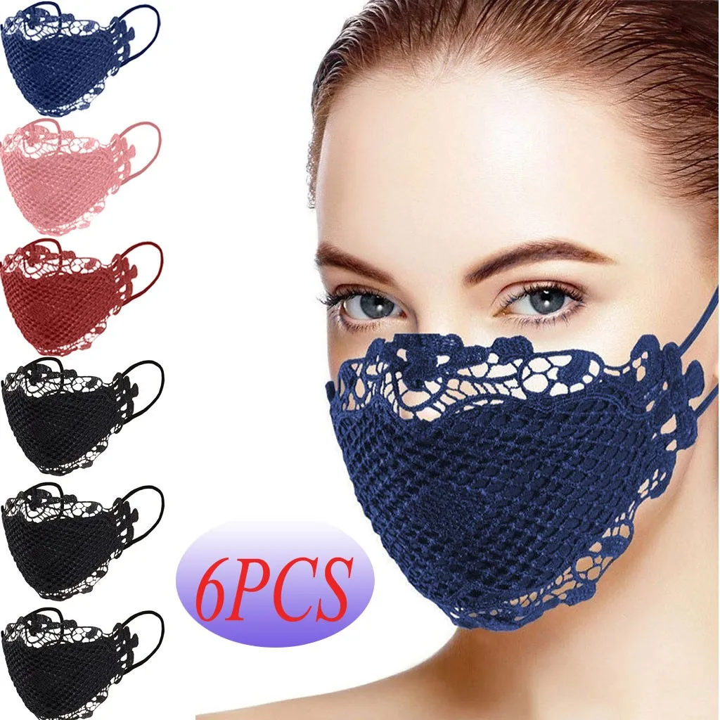 6pc Delicate Lace Applique Washable and Reusable Mouth Face Mask
