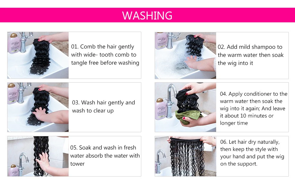Обработайте волосы как собственные волосы, используйте хороший шампунь и кондиционер. Кондиционер очень важен, чтобы волосы были мягкими и управляемыми, дайте им на волосах 5-10 минут и высушите на воздухе вместо выдувания.