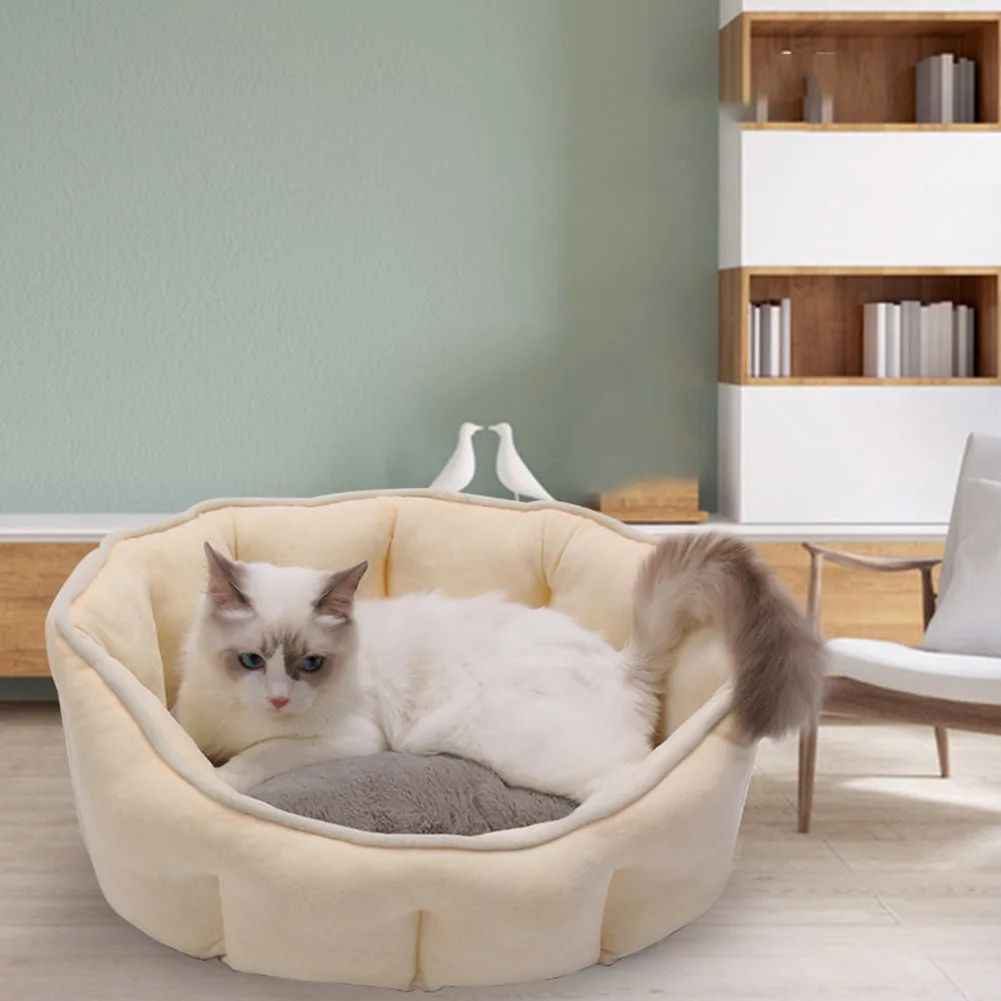 3. Нижняя подушка и боковая часть сделаны из хлопка PP; Короткий плюш может обеспечить вашего питомца идеальной поверхностью для сна, сохраняя кровать питомца теплой и удобной.