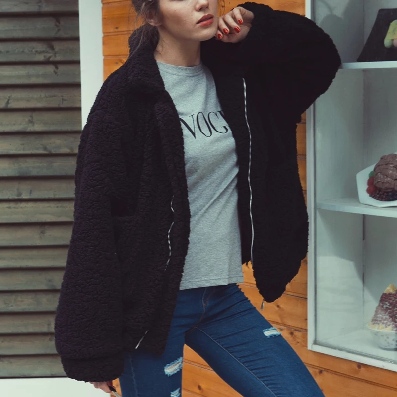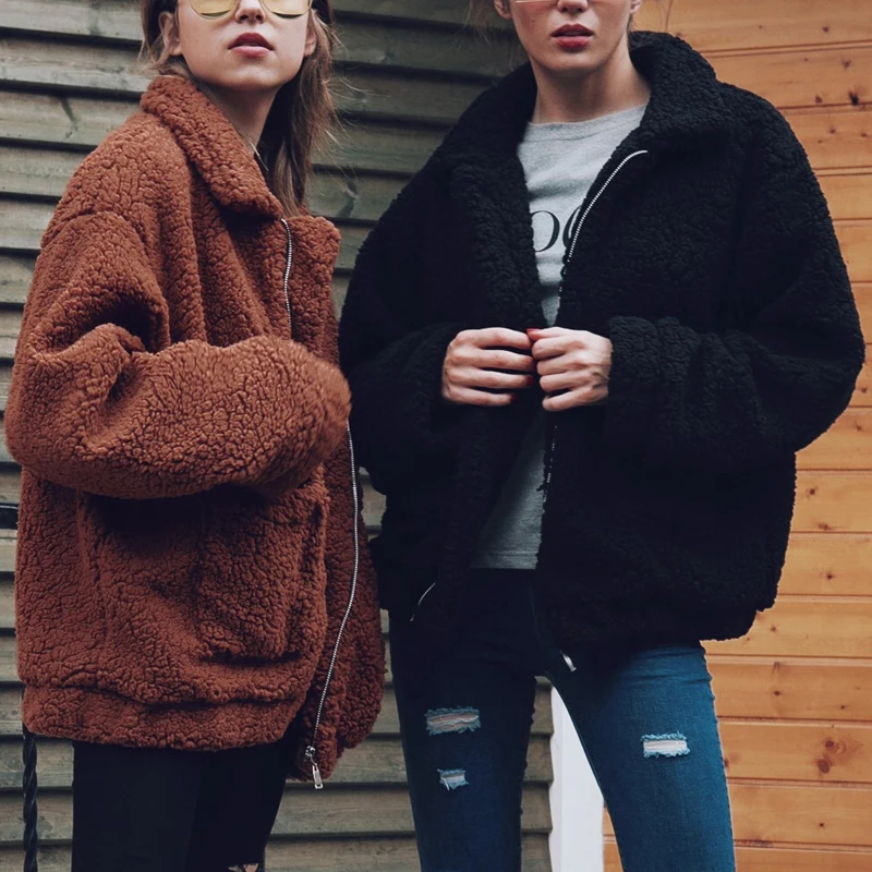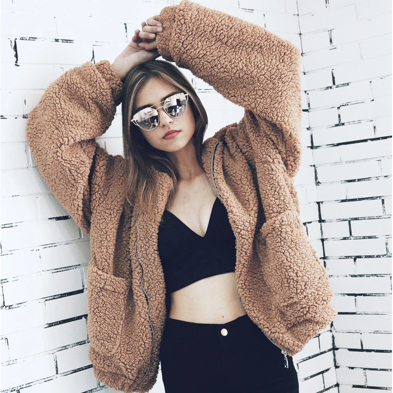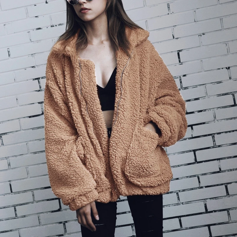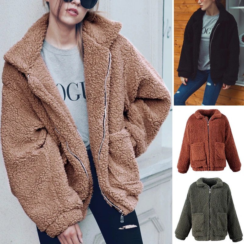 Женское пальто из искусственного меха с карманом Camel, осенне-зимнее пальто на молнии с отложным воротником, повседневная верхняя одежда, 2020