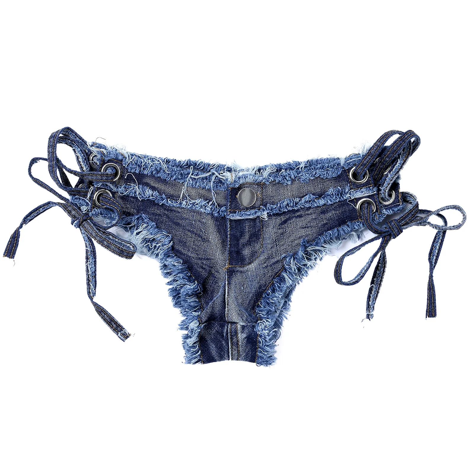 Женские джинсовые трусы-бикини с низкой талией, мини-шорты, пляжные джинсовые шорты.