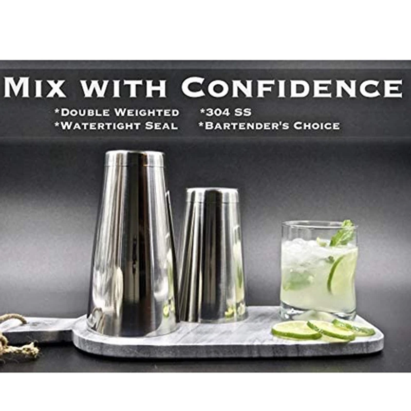 Утяжеленный/неутяжеленный: соединение утяжеленного шейкера с неутяжеленным жестяным лотком обеспечивает лучшее в обоих мирах. Это прочная, плотная печать для встряхивания нескольких коктейлей или яичных белков, при этом все еще легко открыть, когда вы готовы вылить.