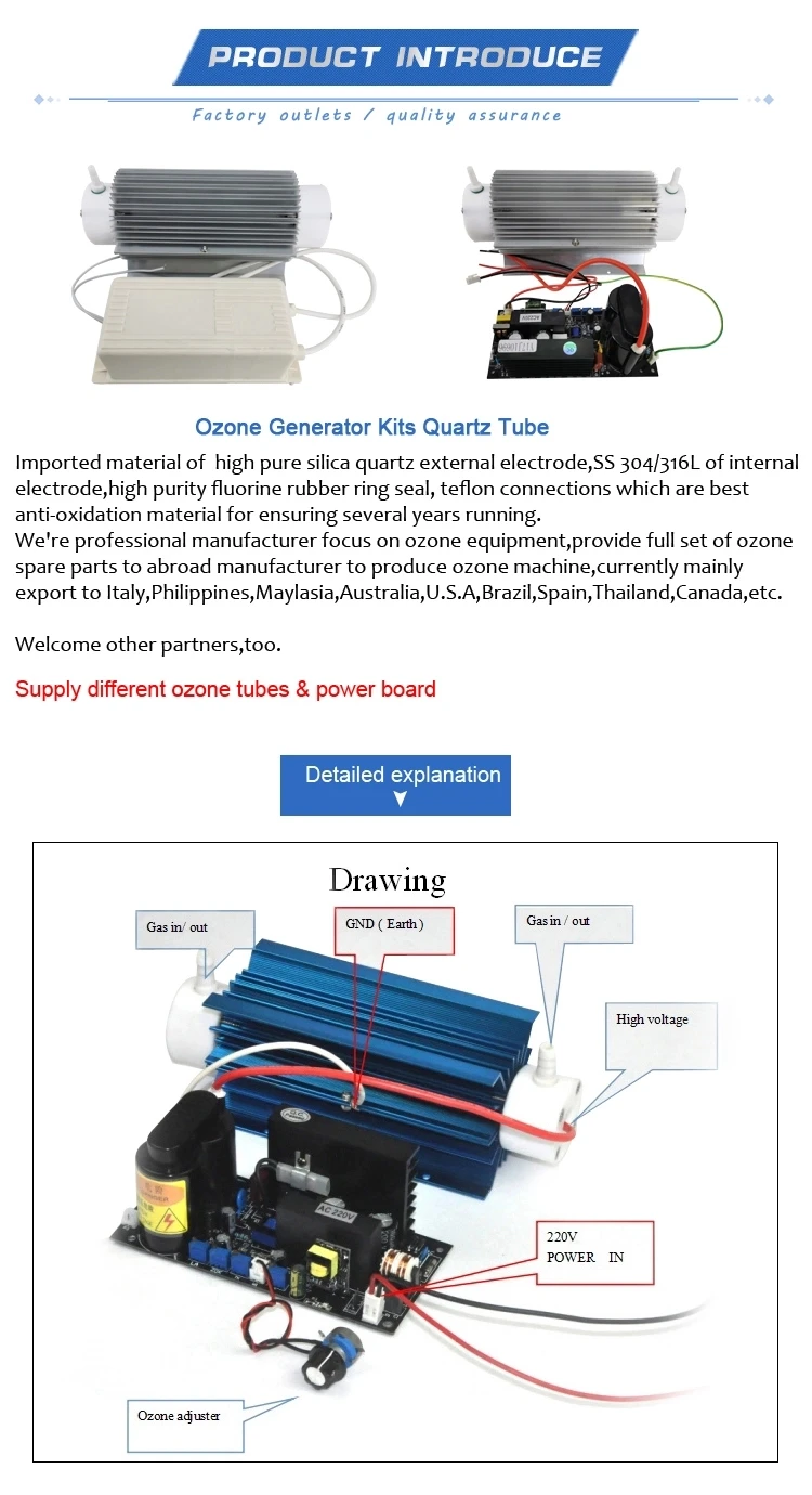 Спецификация:Модель: QL-PJ-5GВыход озона: 5 Гц/чТип трубки: кварцевыйОписание: герметичный, нерегулируемый, воздушное охлаждениеНапряжение: 220 В переменного тока/50 Гц ± 5%Мощность: 60 ВтВыход высокого напряжения: 6 кВ/12 кГцФорма волны: синусоидаРазмер озоновой трубки: 138*52*57 ммРазмер платы питания: 60*40*140 ммМасса: 2 кгОсобенности:Простота установки, экономия времени и беспокойствоНизкое энергопотребление, экологически чистыйРегулируемая концентрация озона, экономия энергииВысококачественный радиатор, улучшающий рабочие характеристикиПрименение:Выход озона из этих запасных частей озона составляет 5 Гц/ч, что относительно выше. Собранный им озоновый генератор может применяться для дезинфекции воздуха и дезинфекции воды. Его источник питания закрыт, что означает, что вы не можете регулировать изменения концентрации озона.Он используется для дезинфекции относительно закрытых пространств, таких как спальня, гостиницы, очистки воздуха, уничтожения бактерий и вирусов, а также предотвращения заболеваний. Его также можно использовать для дезинфекции небольших рыбных прудов или бытовых аквариумов.![]()