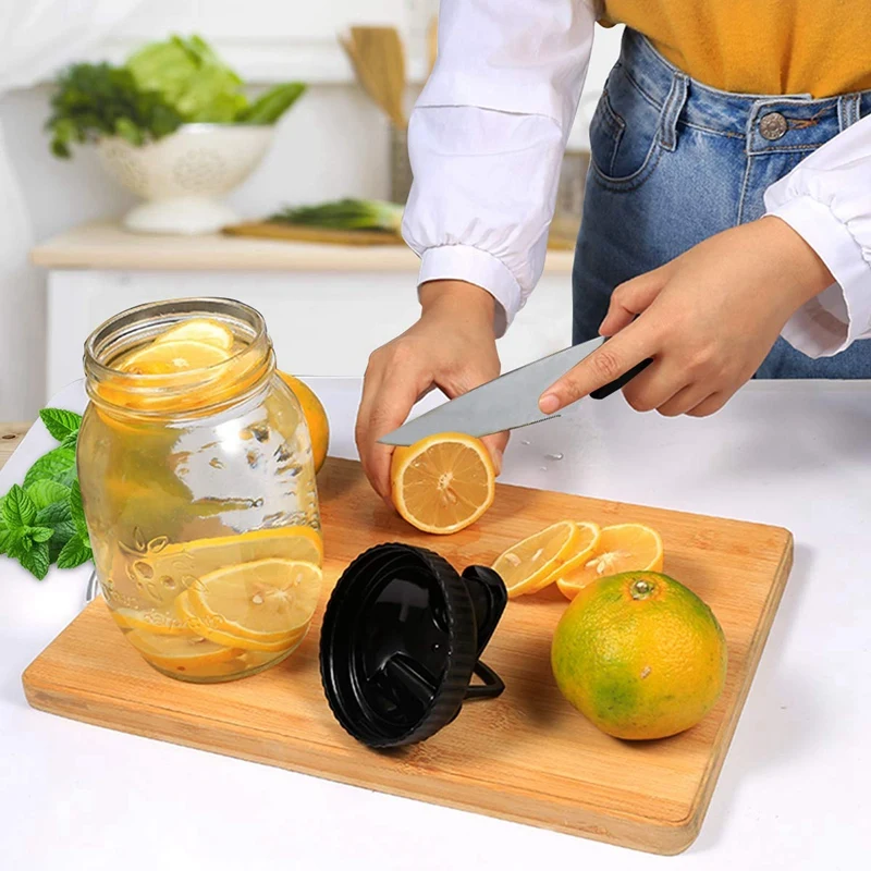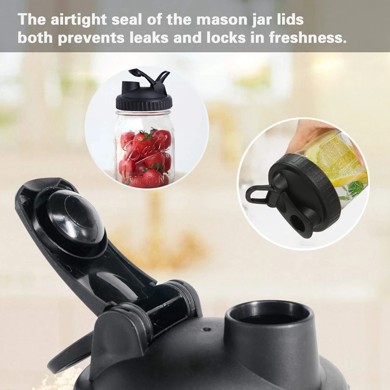 These wide mouth jar lids are tightly sealed with leak-proof seal and turn jar into a drinking bottle,to storage some dry goods or beverage,cold brew coffee,iced tea,lemonade,milk,salad