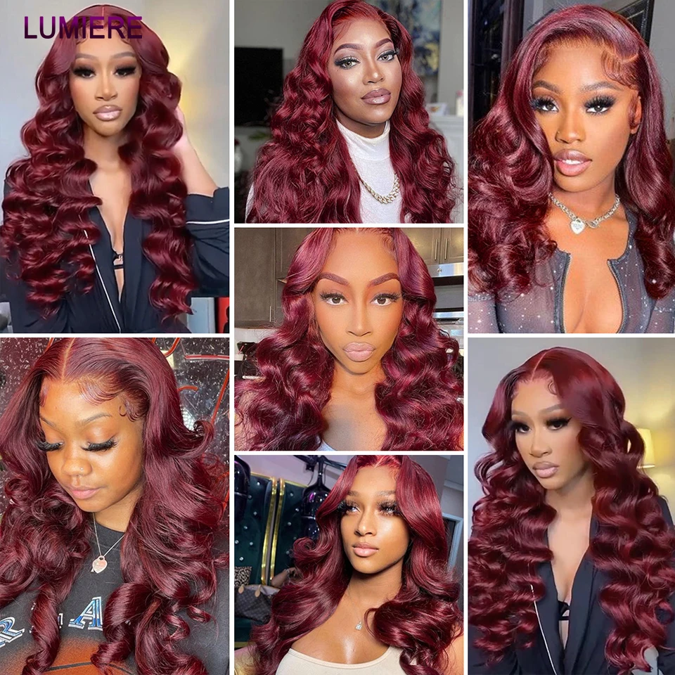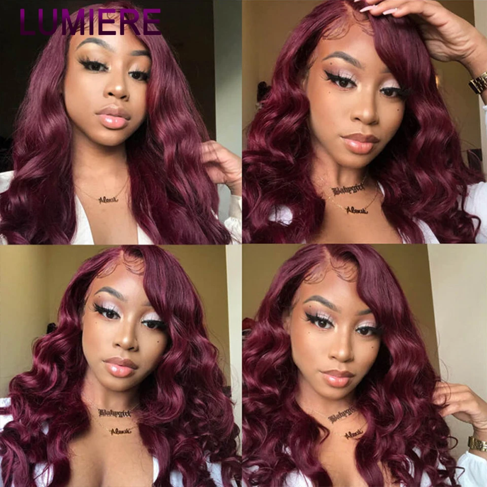 99J/Бургундия волнистые человеческие волосы пряди с закрытием Омбре бразильские человеческие волосы плетение пучок с кружевной фронтальной застежкой Lumiere
