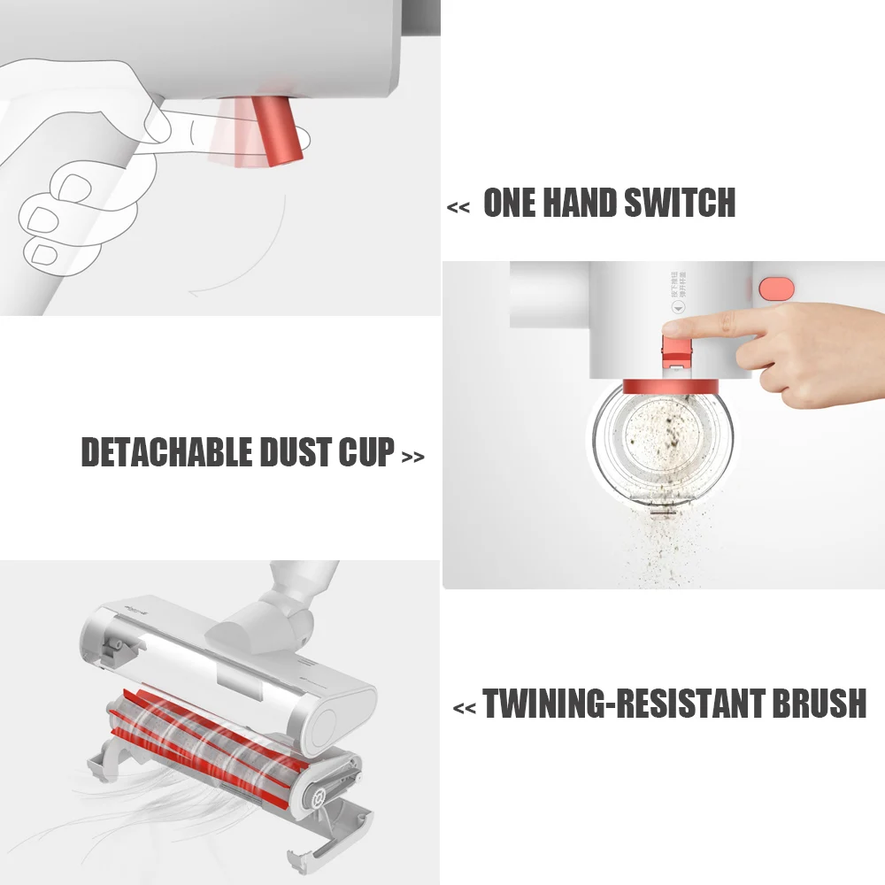 Портативный пылесос Deerma использует беспроводную конструкцию для очистки дома удобным способом после полной зарядки. Оборудованный двумя слоями фильтрации, машина может отделить пыль от воздуха и излучать свежий воздух без вторичного загрязнения дома. Три вида кистей и дизайн шариковых подшипников обеспечат ему возможность очистки каждого мертвого угла.