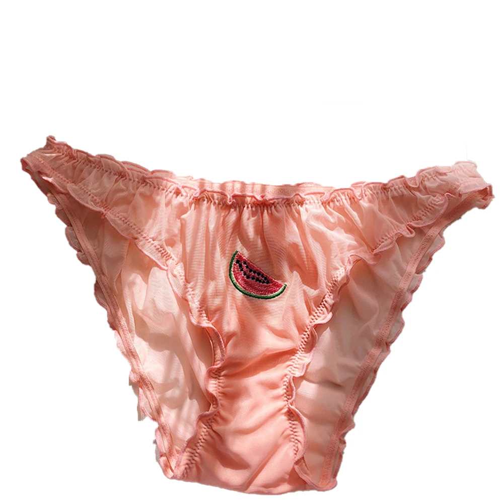 Милое женское сексуальное кружевное белье, Соблазнительные трусики с низкой талией, прозрачные трусики с вышивкой фруктов, бесшовное милое нижнее белье