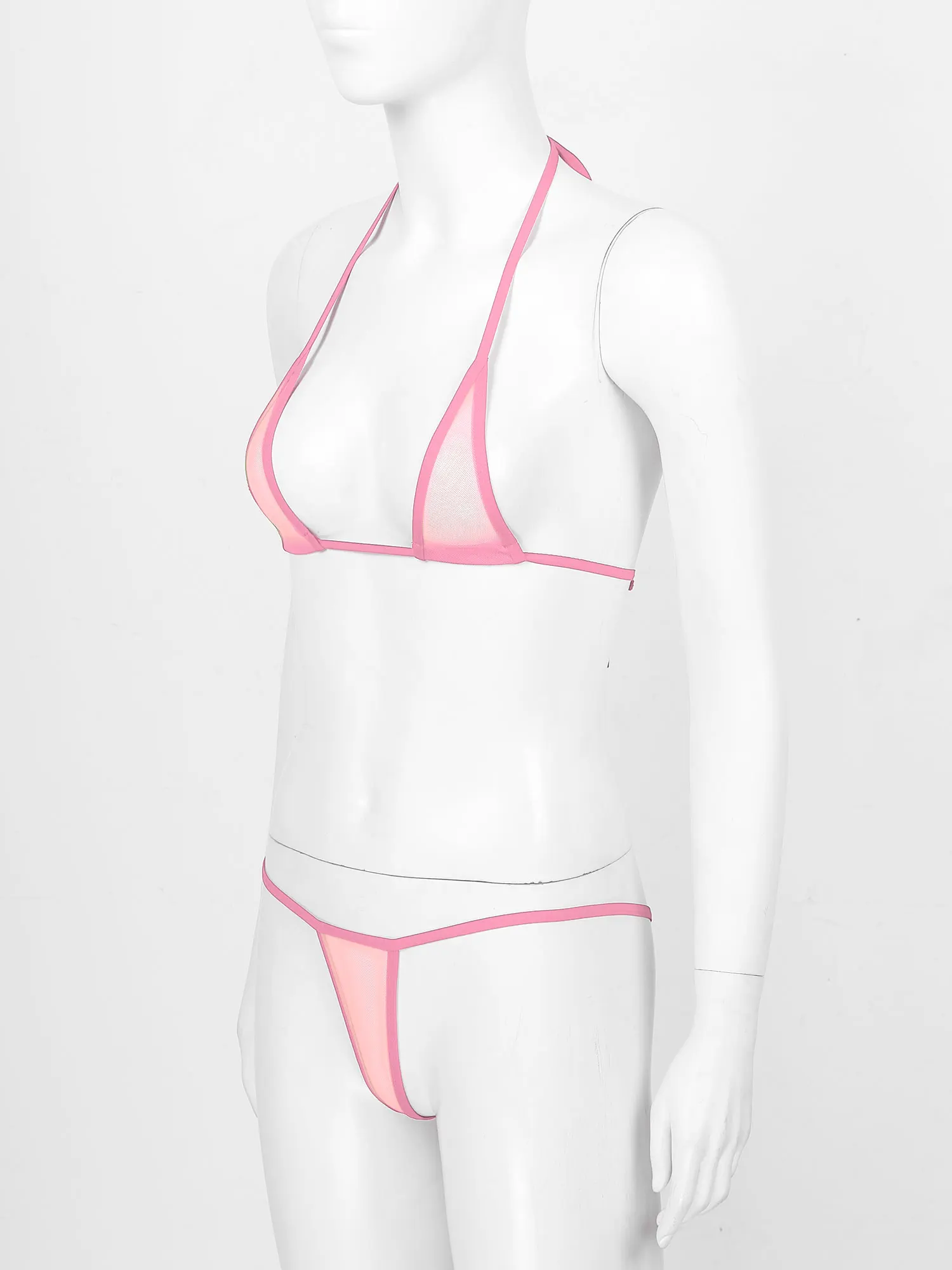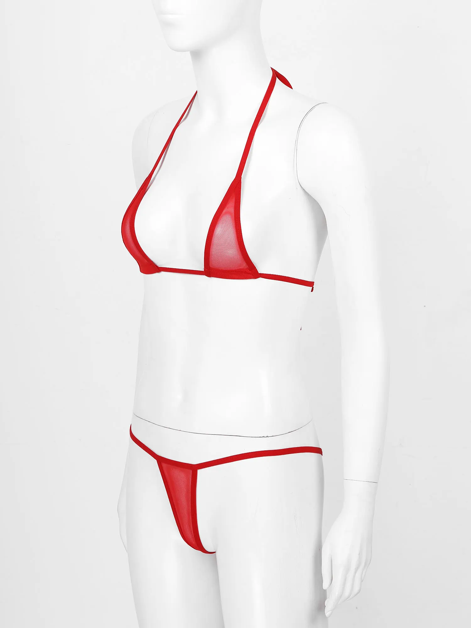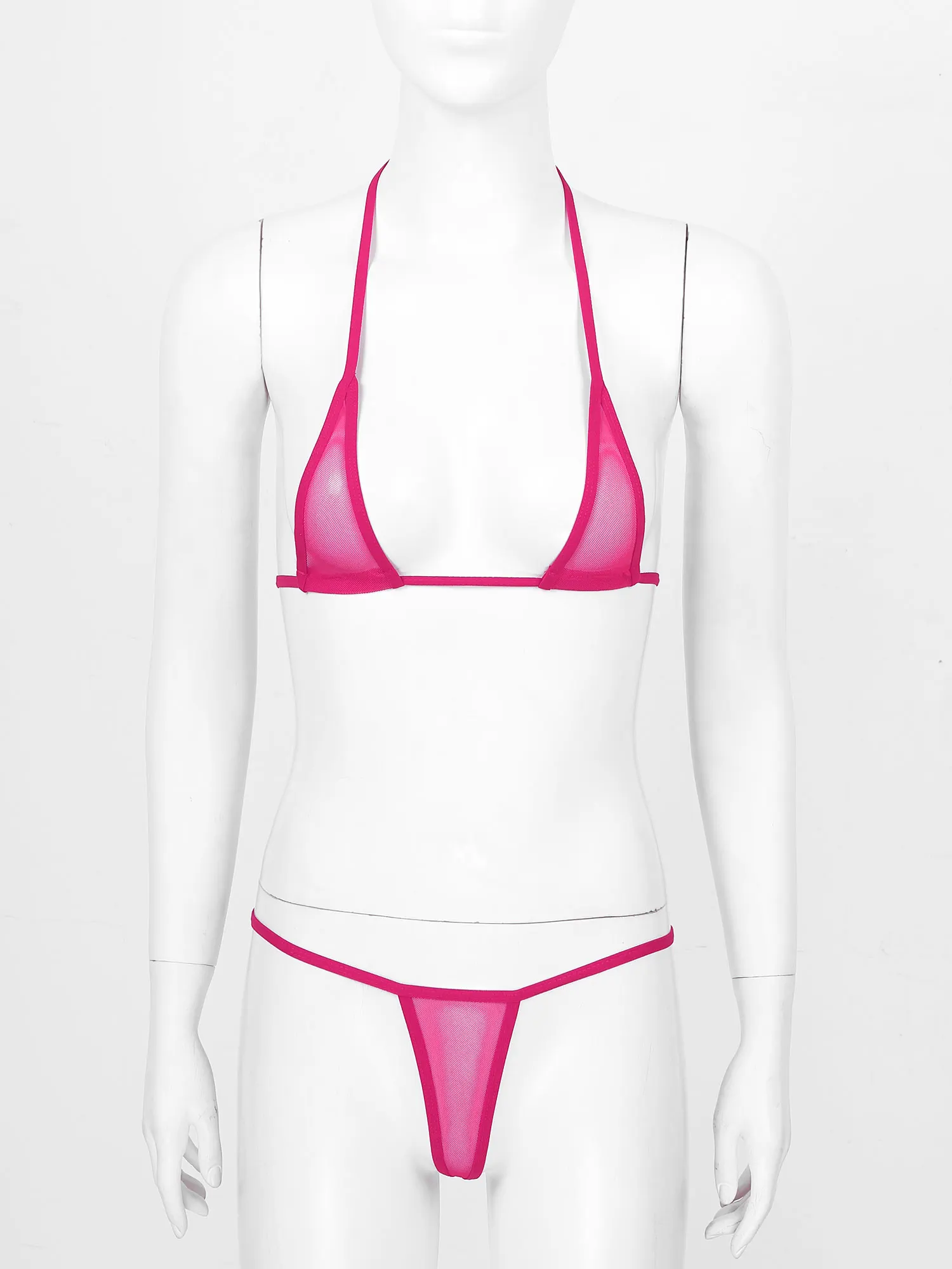 Для Женщин Прозрачное нижнее белье из двух предметов купальники купальник-бикини треугольной формы нижнее белье.