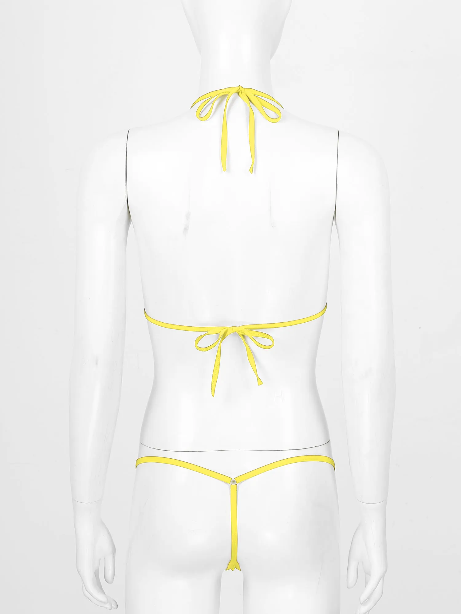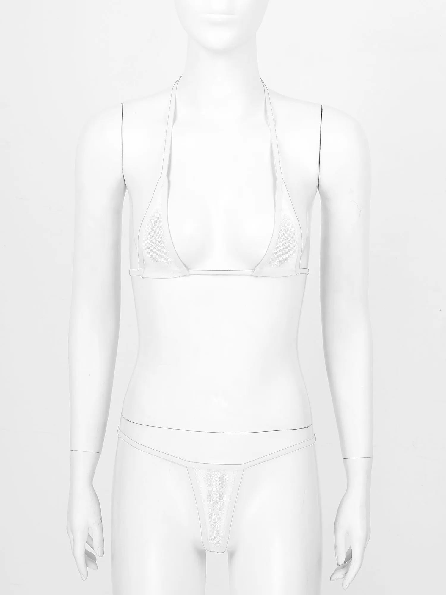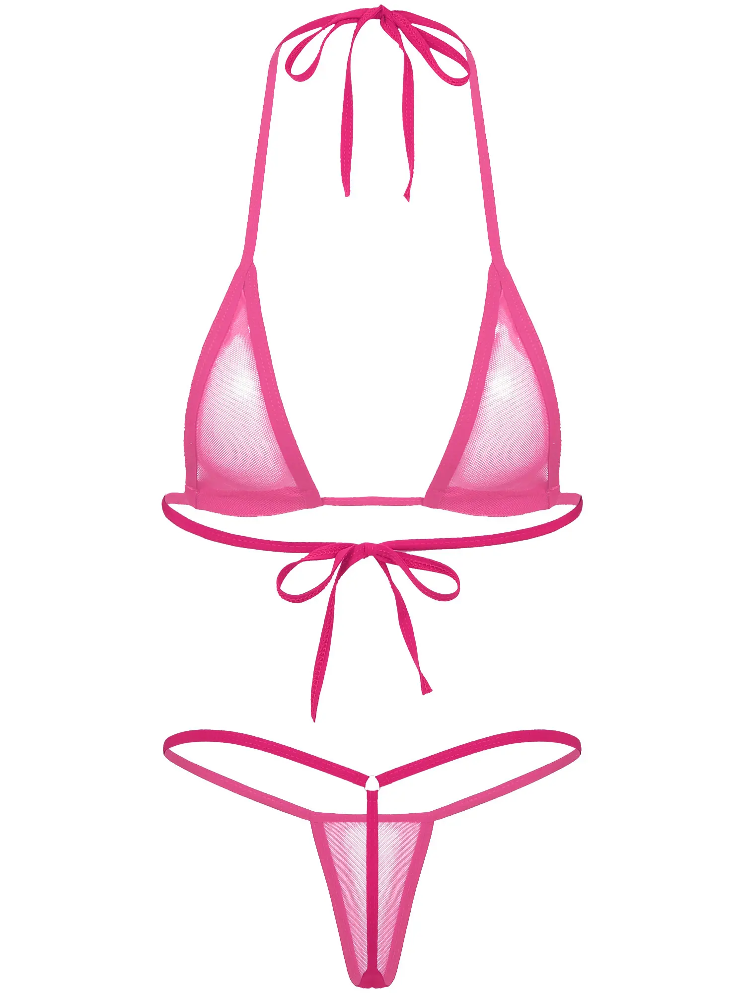 Для Женщин Прозрачное нижнее белье из двух предметов купальники купальник-бикини треугольной формы нижнее белье.