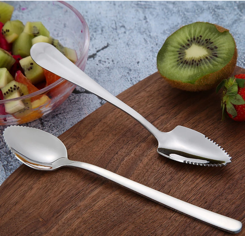 Зубчатая ложка из нержавеющей стали, фруктовая соскабливающая ложка