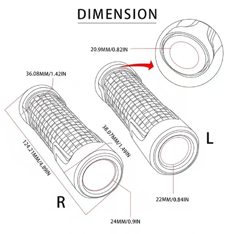 1. Ручки для 7/8 ''(22 мм) левого руля и 1''(24 мм) правого руля.