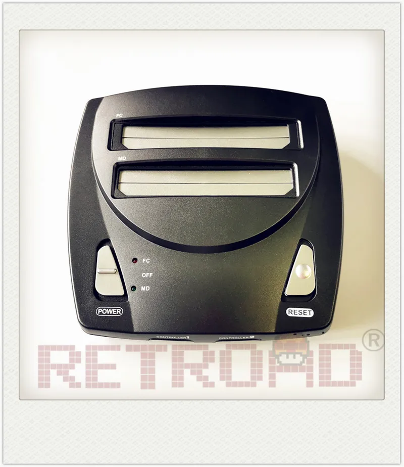Воспроизводить ваши футболки с принтами на тему классических игр с RETROAD 2-в-1 RETRON комбо игровая консоль для семей/FC и SEGA MD Genesis. Высококачественное аппаратное издание, использует верхний механизм загрузки; Это позволяет легко менять игровые картриджи с легкостью. С проводным контроллером 2 шт., поддержка 2 игровых проигрывателей. Ретро-взрыв из прошлого! Полностью совместим с одной машиной двойного назначения. Совместимость с 98% 16 бит Sega одиночный/multi игровые карты и 8-битный Nintendo карт на рынке. N/P O/J переключатель преобразования может выбрать другую версию для игрового программного обеспечения. (ЕС/США/JP)