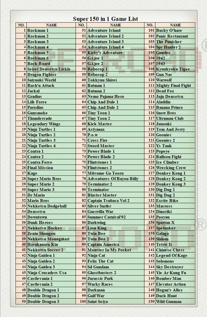 * Этот продукт не гарантирует полную работу любой MD / Gen игры для совместимости. Некоторые игры могут отличаться от исходного голоса. В некоторых играх звук или видео могут стать нестабильными. * Этот продукт является оригинальным продуктом RETROAD и не является лицензированным продуктом компании Sega gates. Этот продукт не разработан, изготовлен, спонсируется, одобрен или лицензирован Nintendo®Америки в США и/или других странах. * Перечисленные названия или торговые наименования являются торговыми марками или зарегистрированными торговыми марками каждой компании. * Спецификация, форма, цвет и посылка этого продукта могут быть изменены без предварительного уведомления об усовершенствовании. * Игровое программное обеспечение продается отдельно. Пожалуйста, подготовьте отдельно.