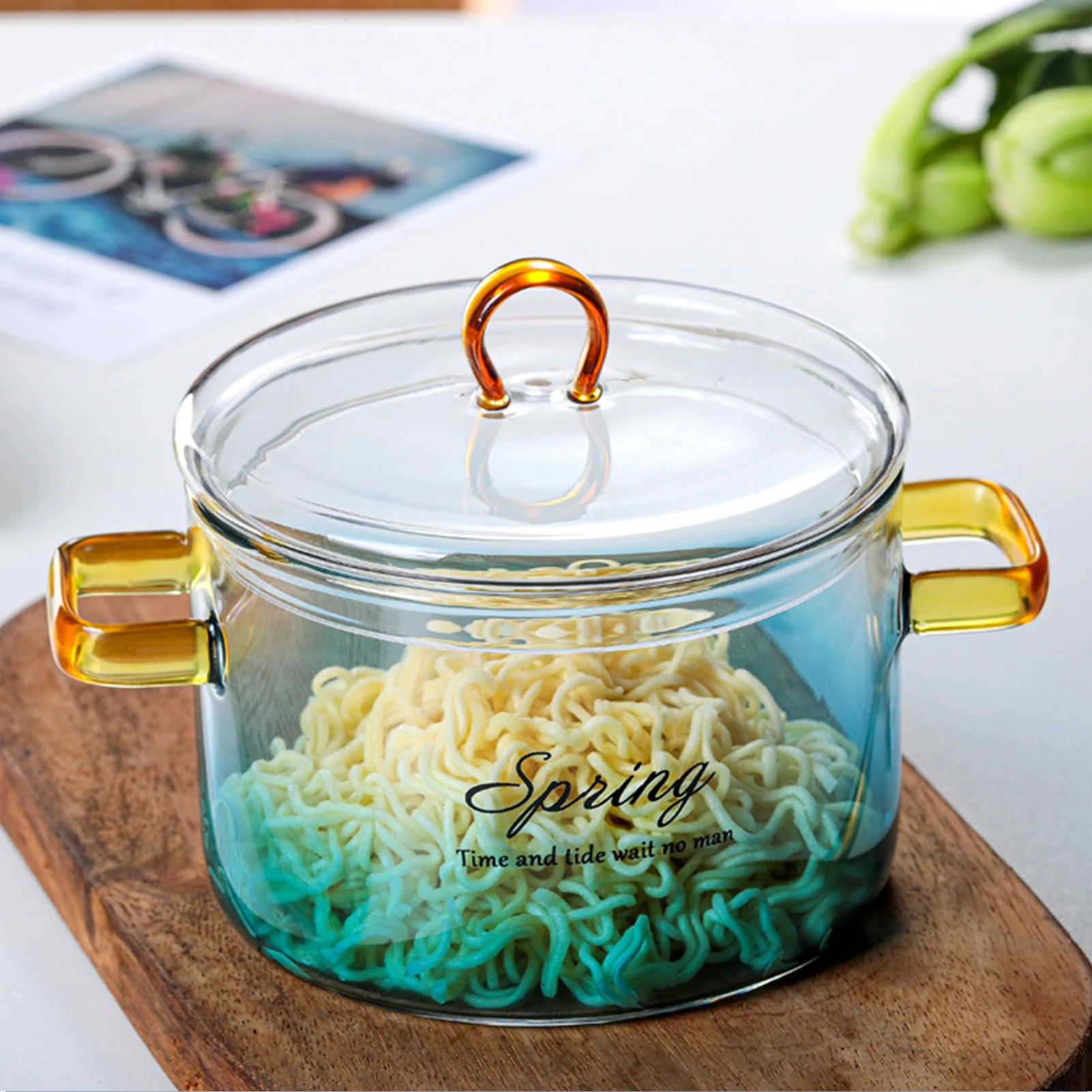 Стеклянная кастрюля градиентного цвета с крышкой, термостойкая кастрюля, стеклянная кастрюля, варочная поверхность, безопасная для пасты, лапши, супа, молока