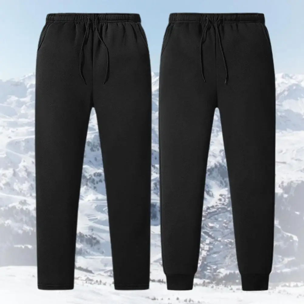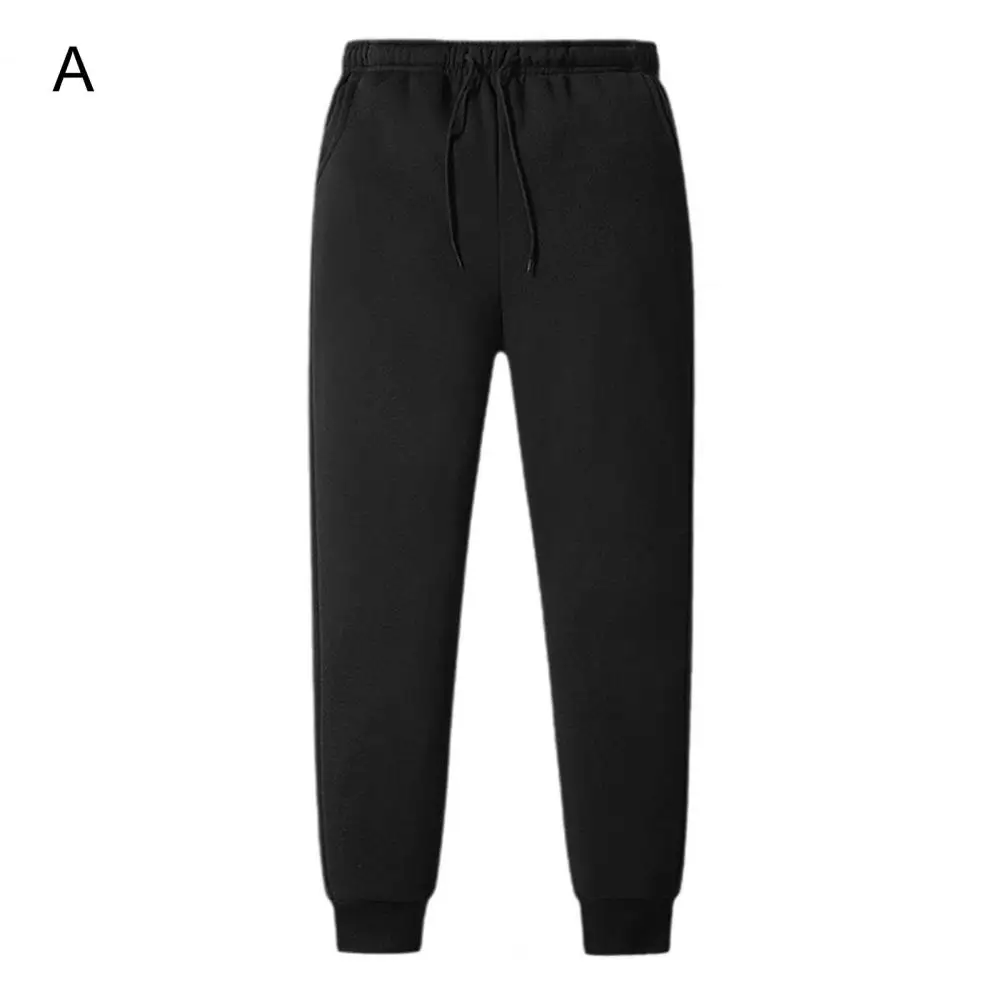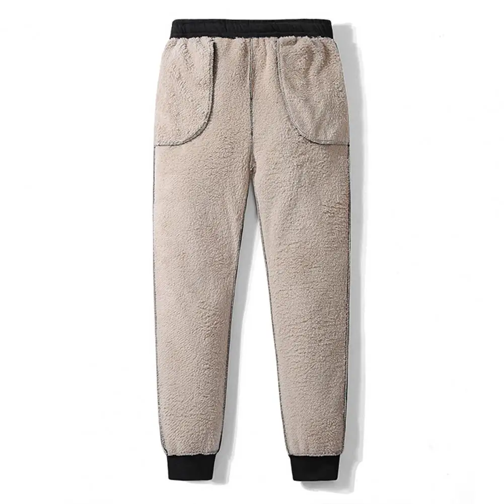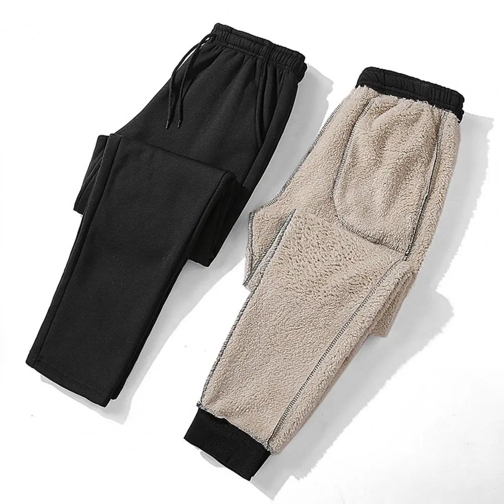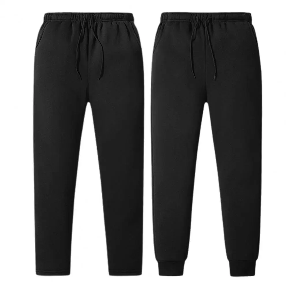 Зимние мужские спортивные штаны с плюшевой подкладкой, однотонные спортивные брюки с завязками