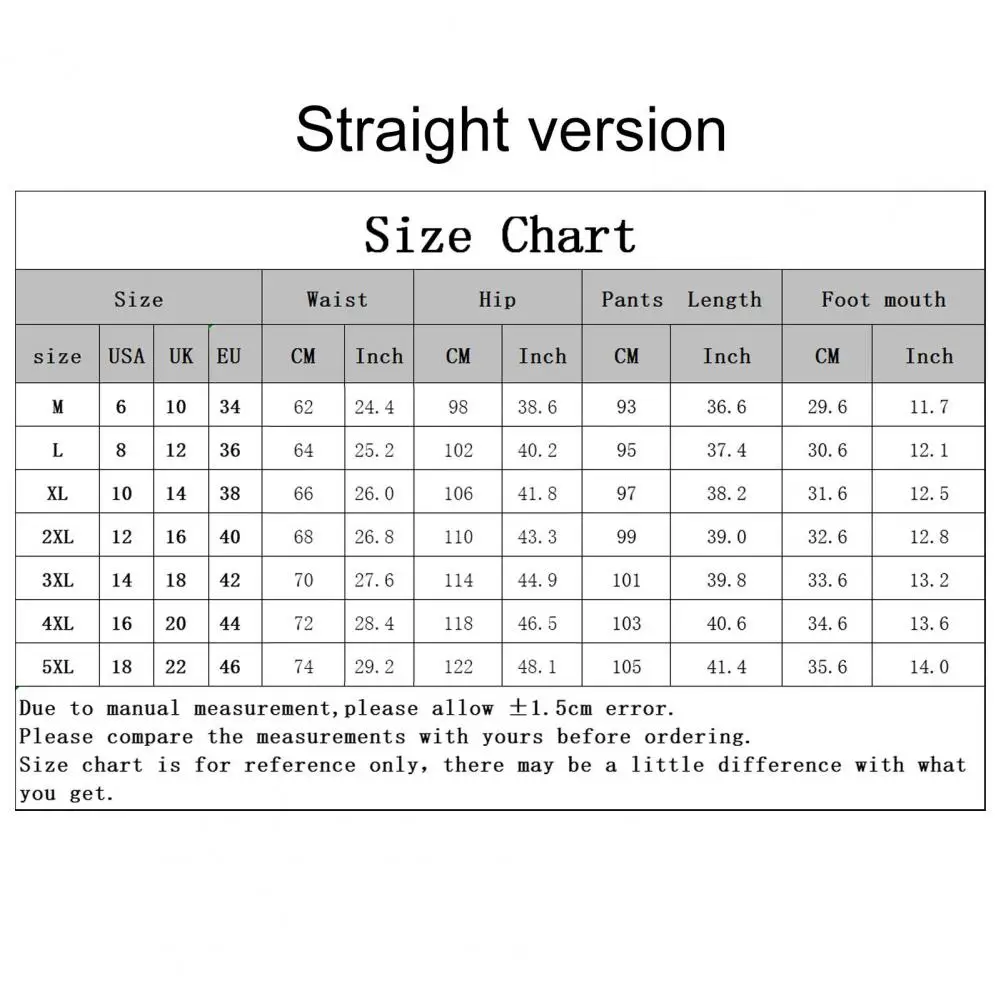 [Наш Размер 5XL] обхват талии: 74 см/29,13 дюйма, обхват бедер: 122 см/48,03 дюйма, ширина голенища: 35,6 см/14,02 дюйма, длина: 105 см/41,34 "(прибл.)