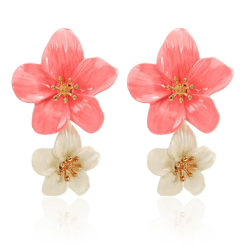 Винтажные женские серьги с большим двойным цветком, свадебные висячие серьги в богемном стиле 2020, модные вечерние длинные Ювелирные серьги для женщин, новинка 2021, Прямая поставка