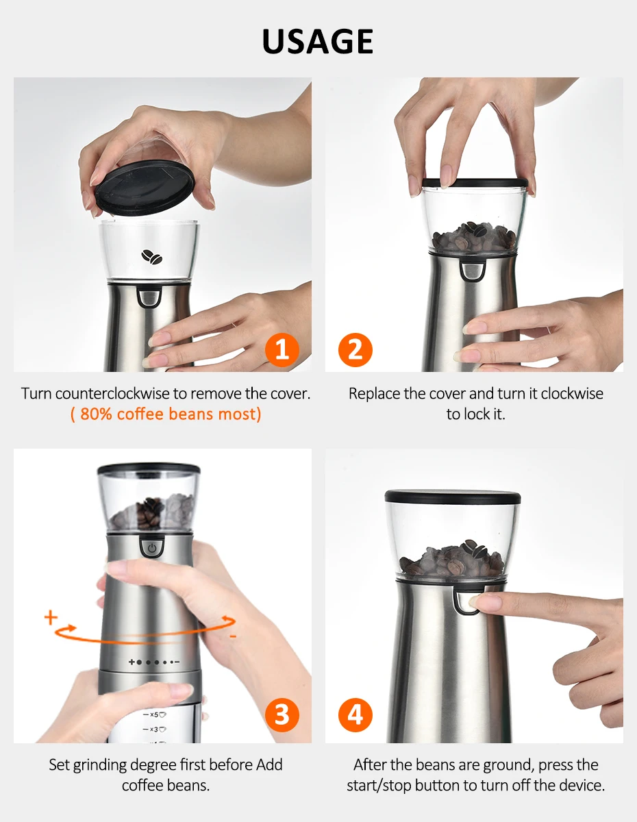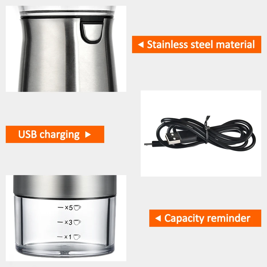 Перезаряжаемая кофемолка, USB, электрическая кофемашина, Профессиональная Регулируемая кухонная кофемолка, устройство для орехов, зерен, специй, зерен