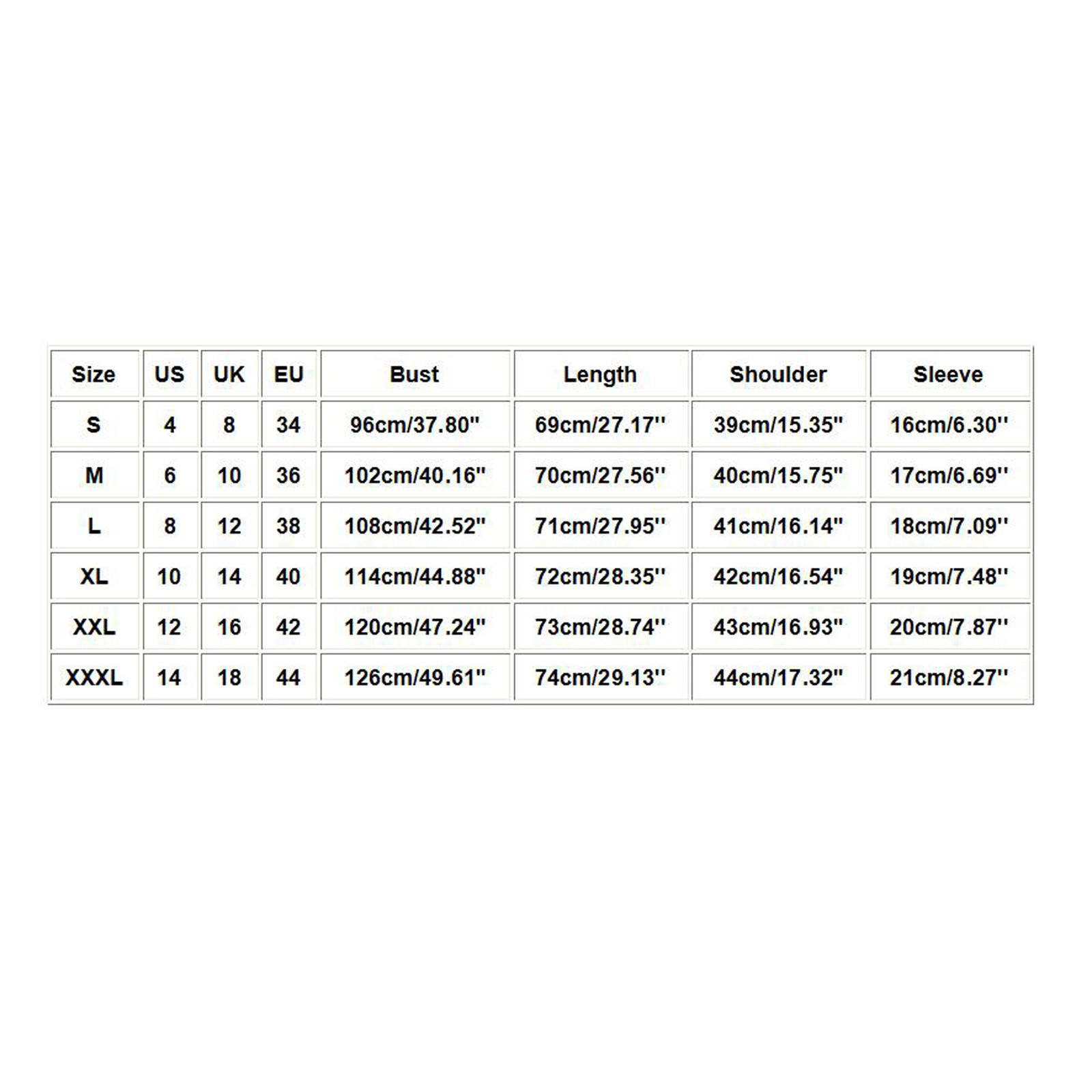 | Размер | Бюст | Плечо | Рукав | Длина |