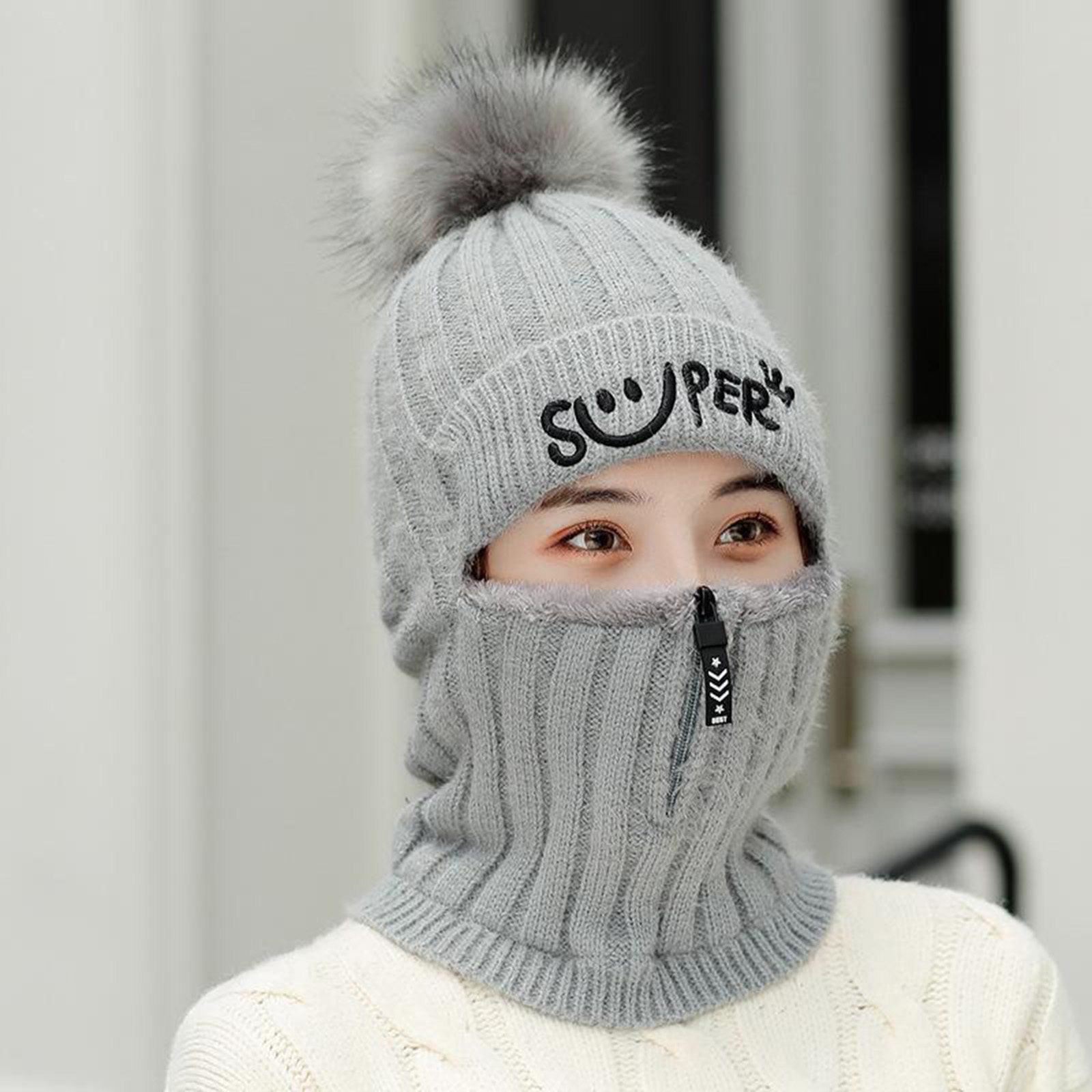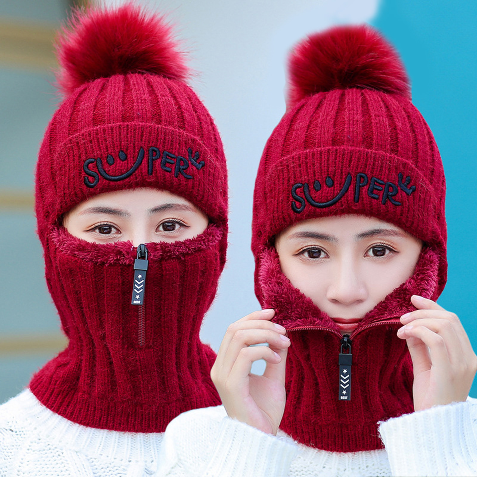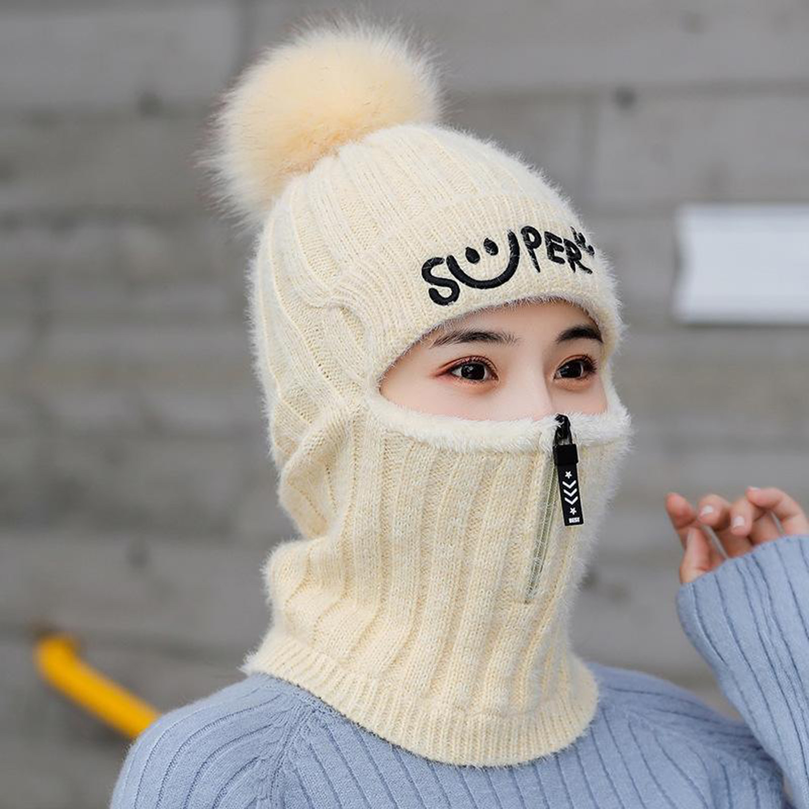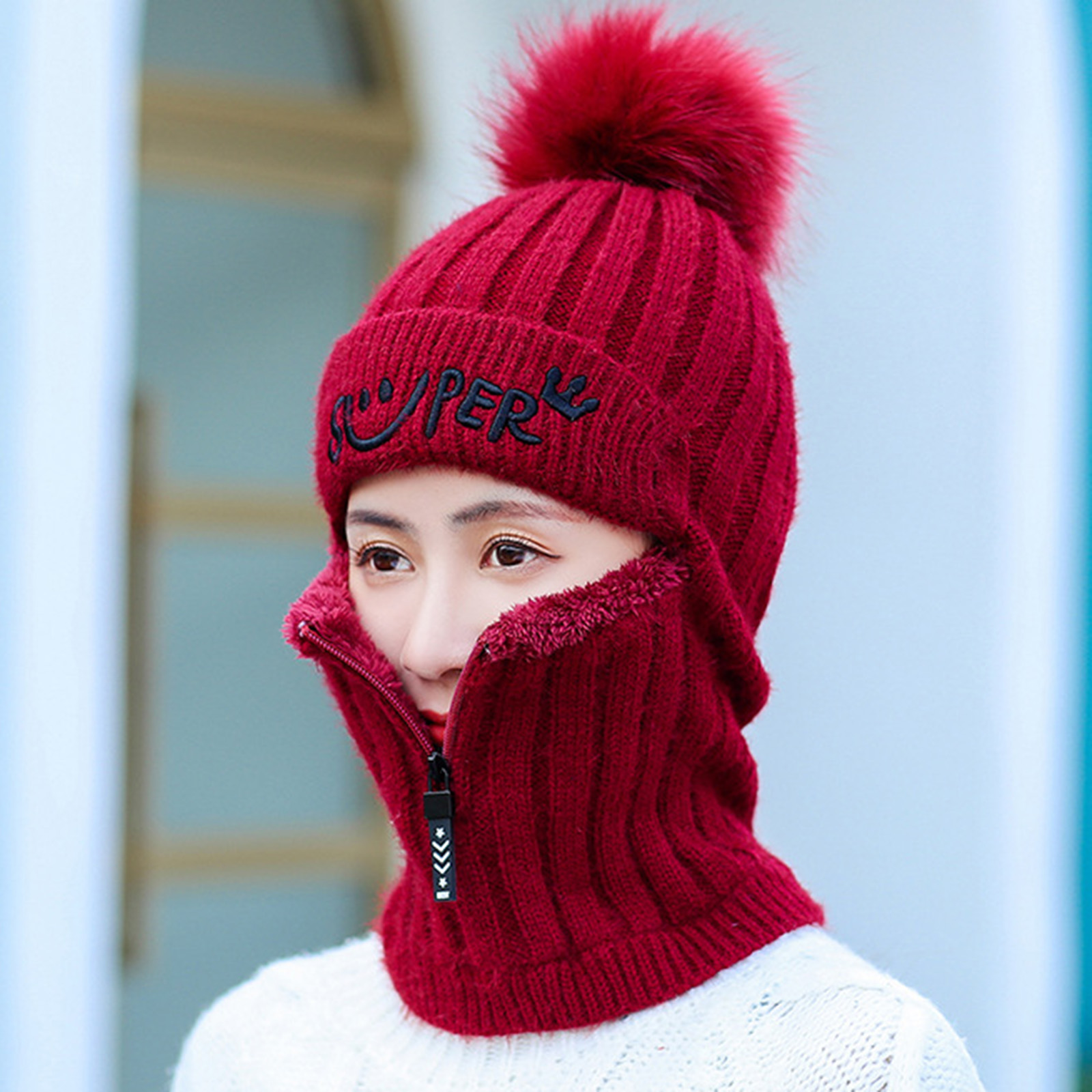 1. Adjuctable Дизайн: с этой молнией, вы можете регулировать шляпу в любое время и в любом месте, и это очень удобно носить! Защитите рот и нос от холодного ветра