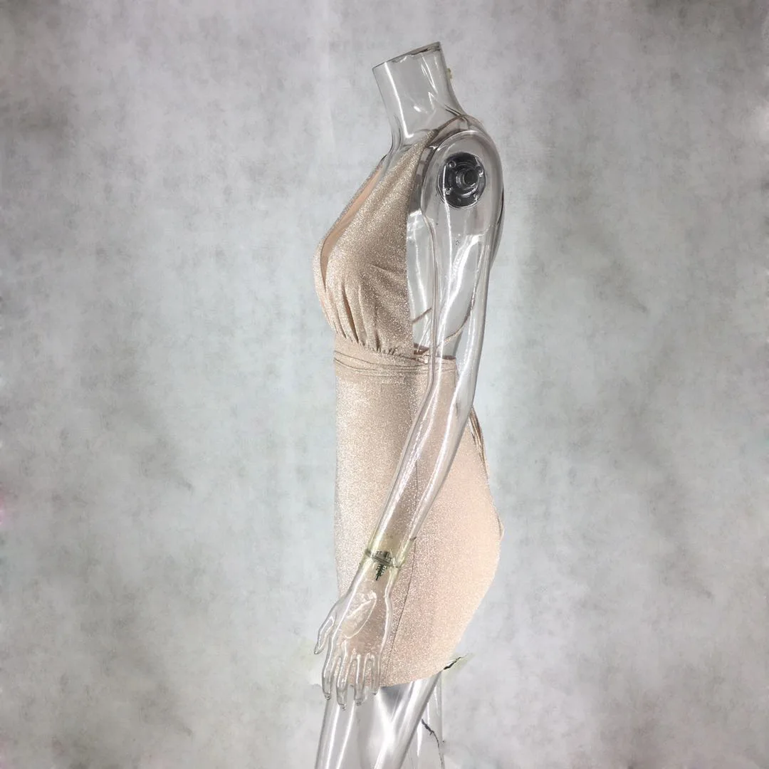 Tossy Новые блестящие туфли с низким вырезом на спине Мини Вечерние Платье женское платье на бретельках без рукавов облегающее летнее платье элегантный тонкий Шампанское платье Vestidos