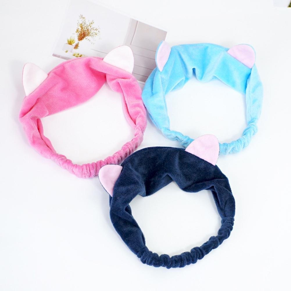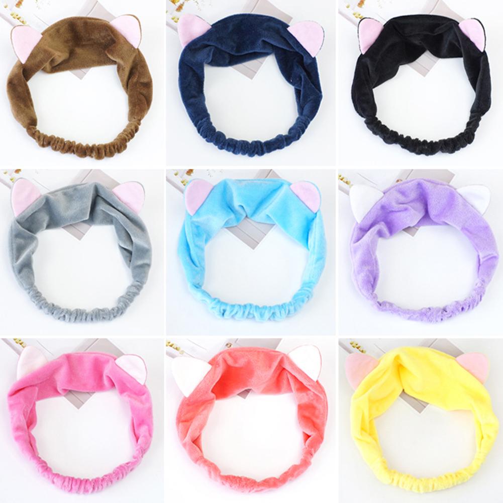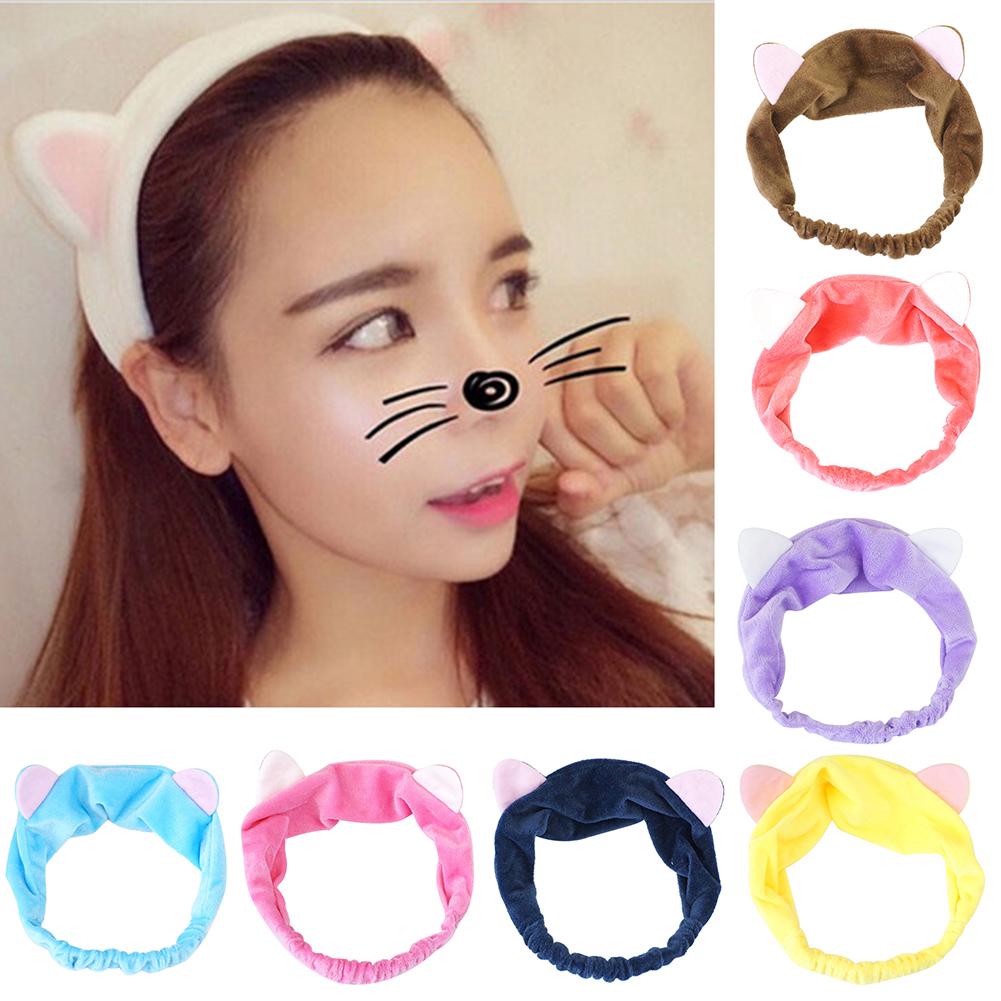Повязка на голову с кошачьими ушками для женщин и девочек, эластичная повязка на голову, головной убор для мытья лица