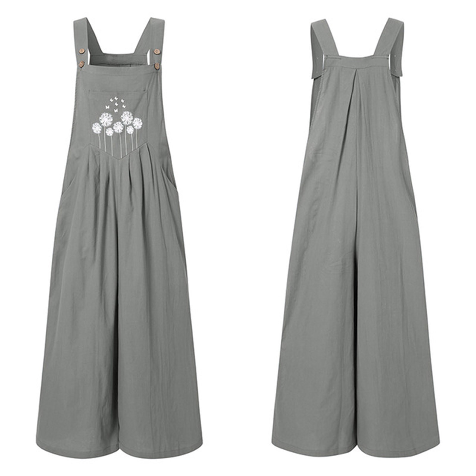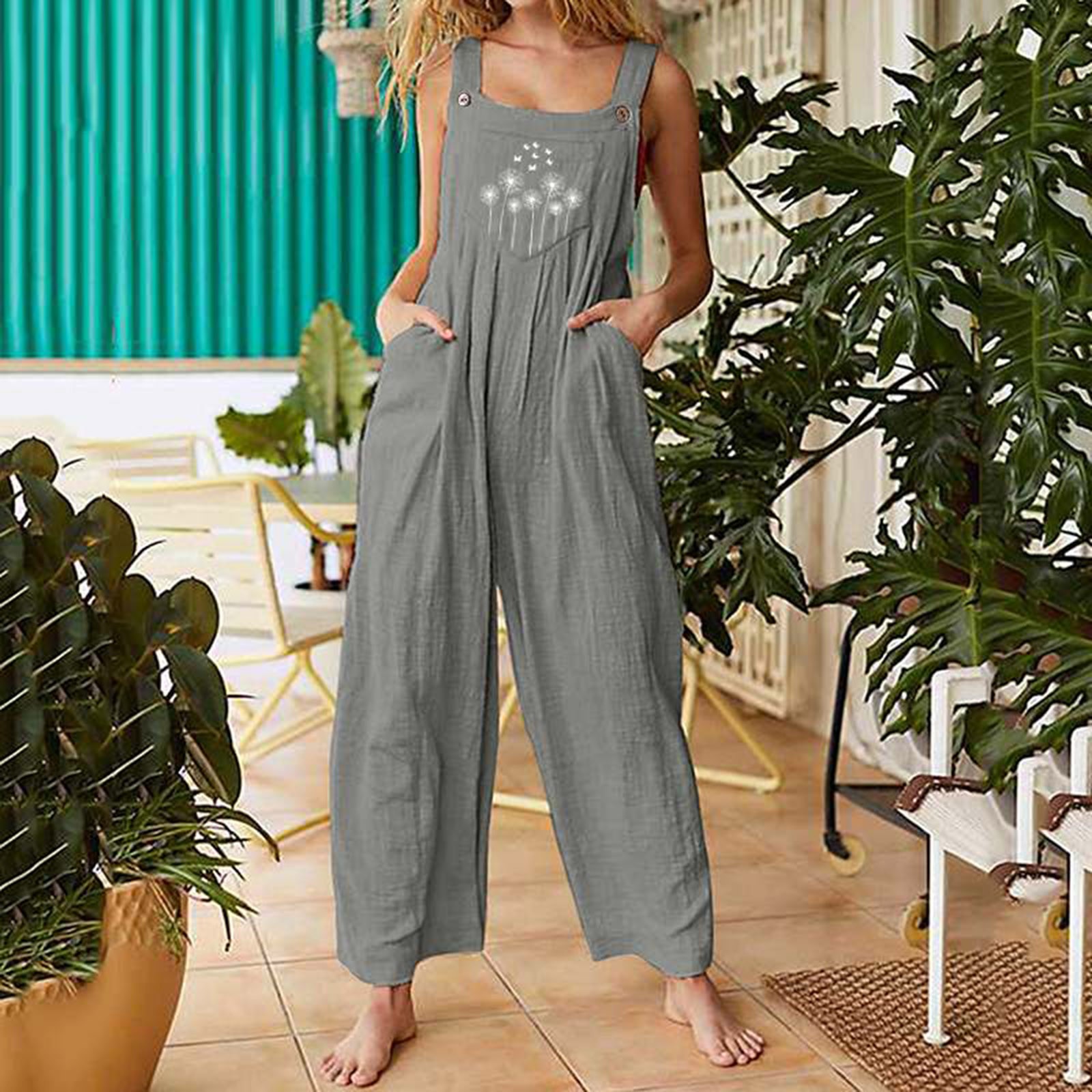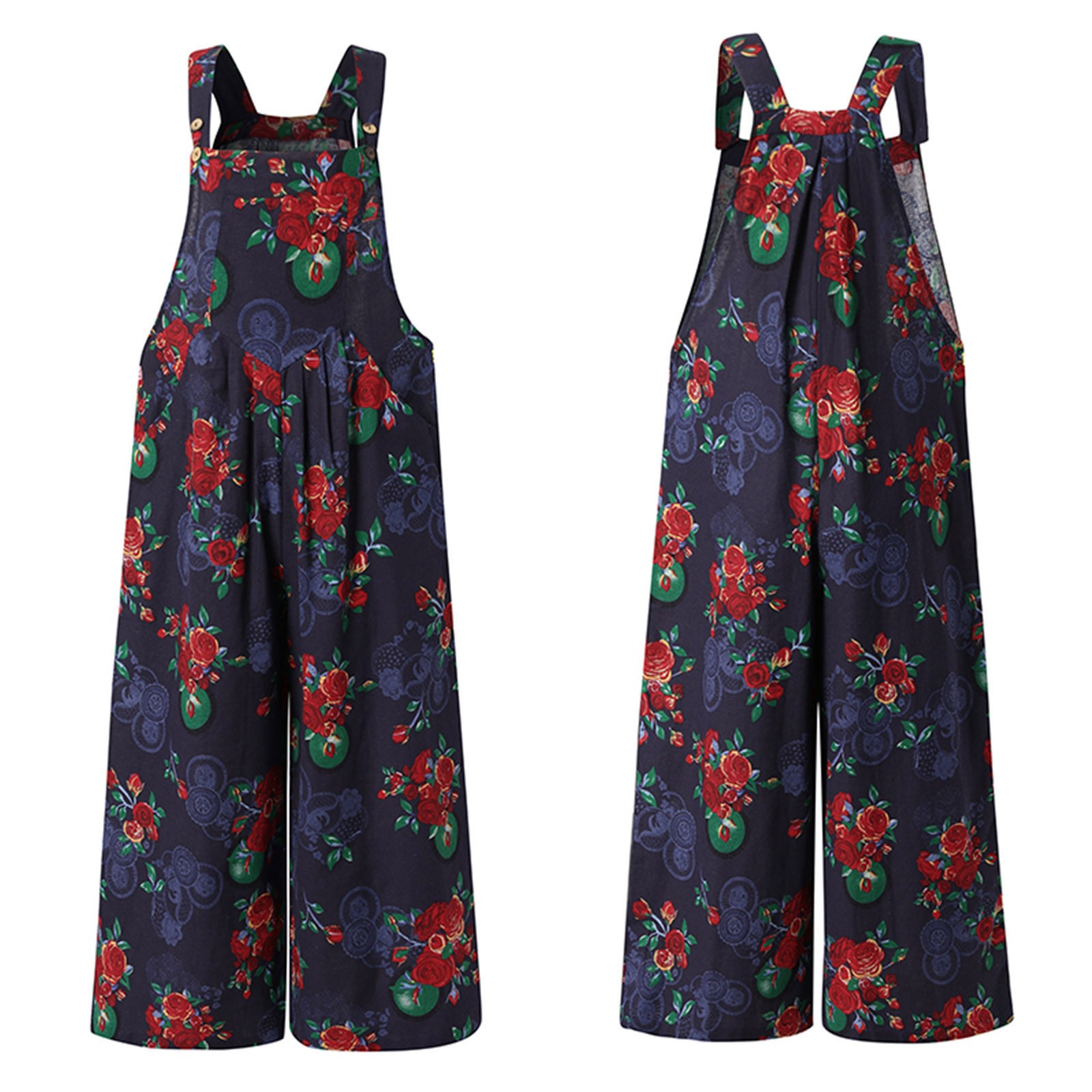 Женский винтажный комбинезон с широкими штанинами и карманами с цветочным принтом