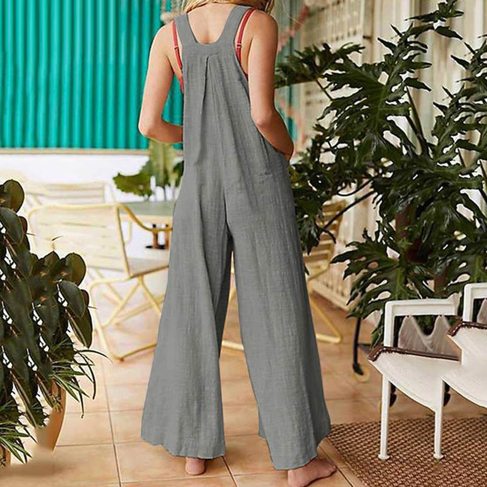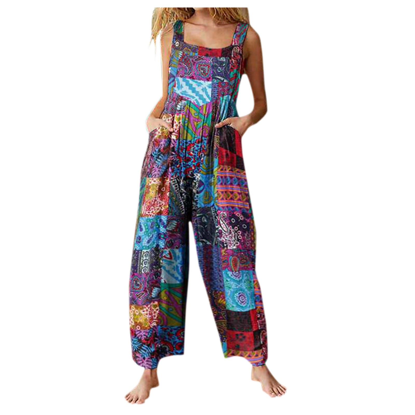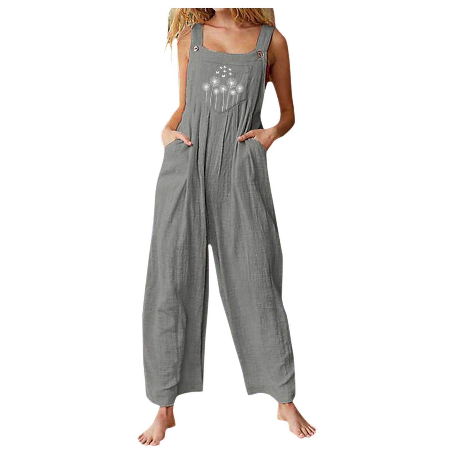 Женский винтажный комбинезон с широкими штанинами и карманами с цветочным принтом
