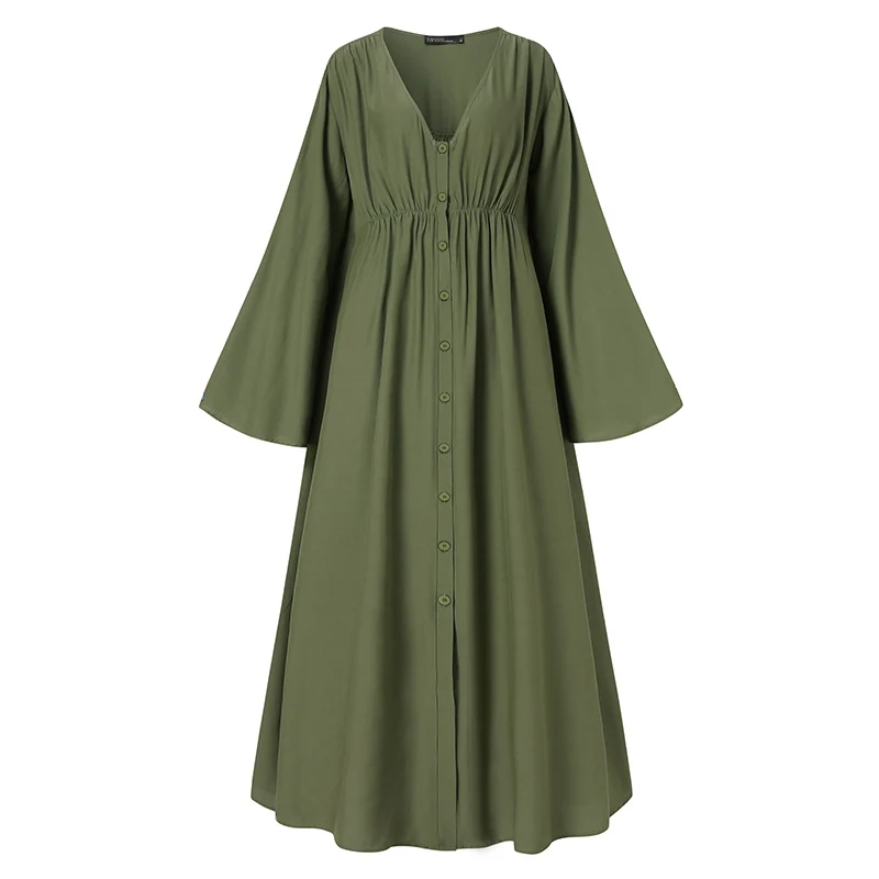 | Посылка включает в себя: 1 платье Материал: 55% полиэстер + 45% искусственный шелк Цвета: черный, коричневый, армейский зеленый Размер: S,M,L,XL,2XL, Длина рукава: длинный рукав Вырез: v-образный вырез Рисунок: однотонный Длина: до щиколотки Цепочка с пряжкой: на пуговицах спереди Толщина: тонкая Особенности: расклешенный рукав, большие качели Стиль: свободный, богемный, ретро, Европейский Сезон: весна, лето, осень, зима Повод: Семейные, вечерние, свадебные, праздничные, рабочие Внимание: 1. Реальный объект может немного отличаться по цвету по сравнению с изображениями на разных мониторах компьютеров. Будьте внимательны, спасибо. 2. Возможны отклонения в 1-3 см вручную. Извините за неудобства. 3. Пожалуйста, превалируйте на реальных деталях, модели только для справки. 4. Внимание! Пожалуйста, внимательно проверьте таблицу размеров перед размещением заказа.