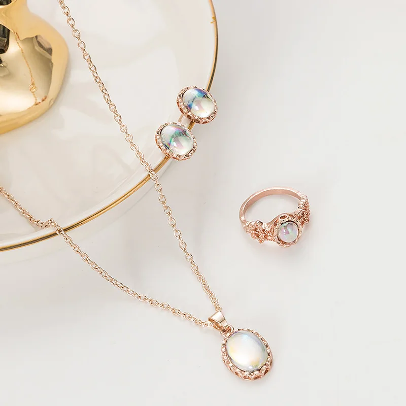 Модный натуральный опал, драгоценный камень, серьги Ellips, кольцо и ожерелье, комплект из 3 предметов для женщин и девочек, новый стиль, ювелирный набор, горячая Распродажа