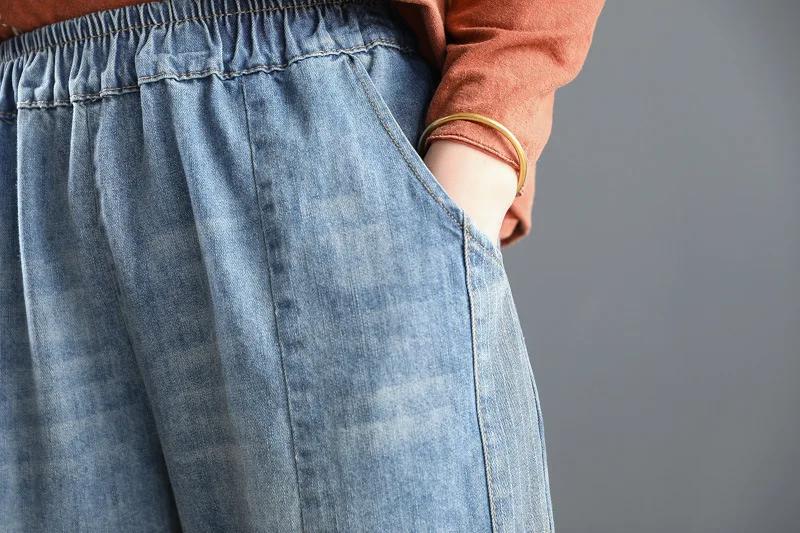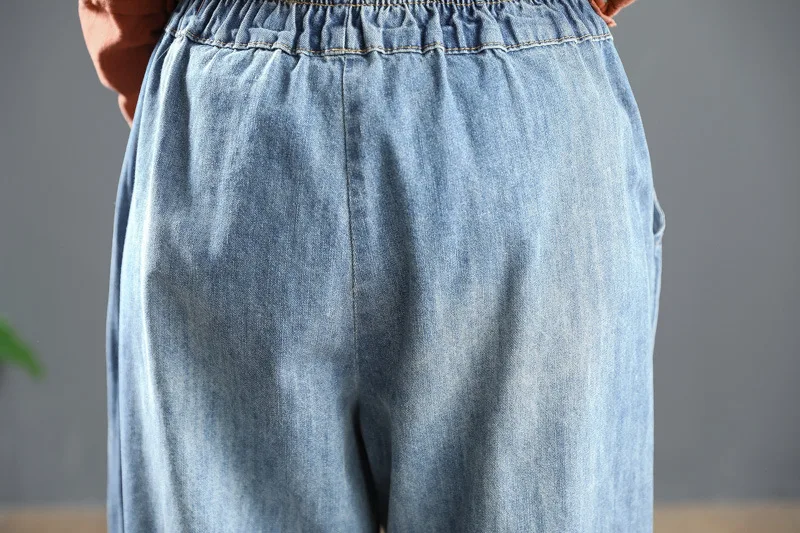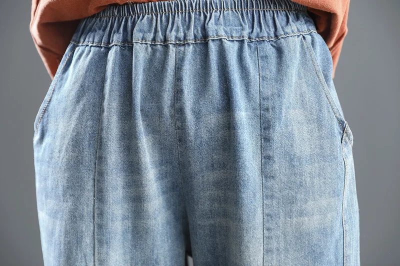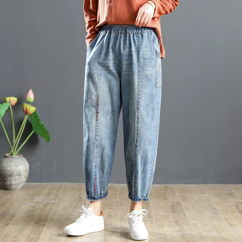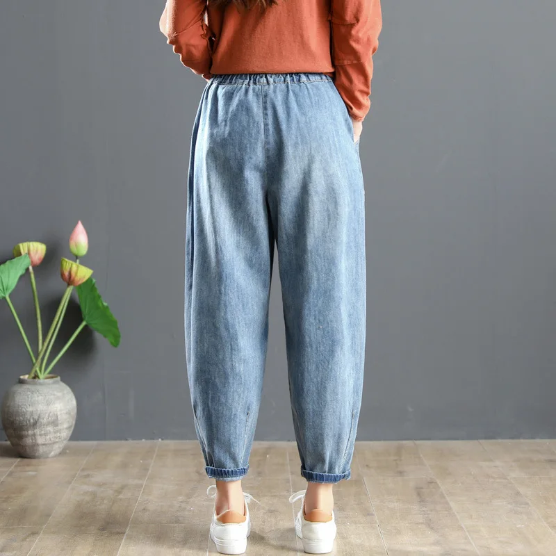 Повседневные свободные потертые джинсы с Вышивкой Букв длиной до щиколотки