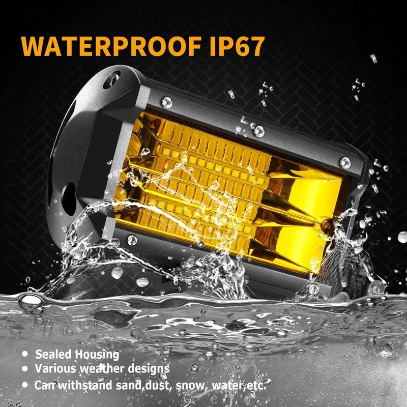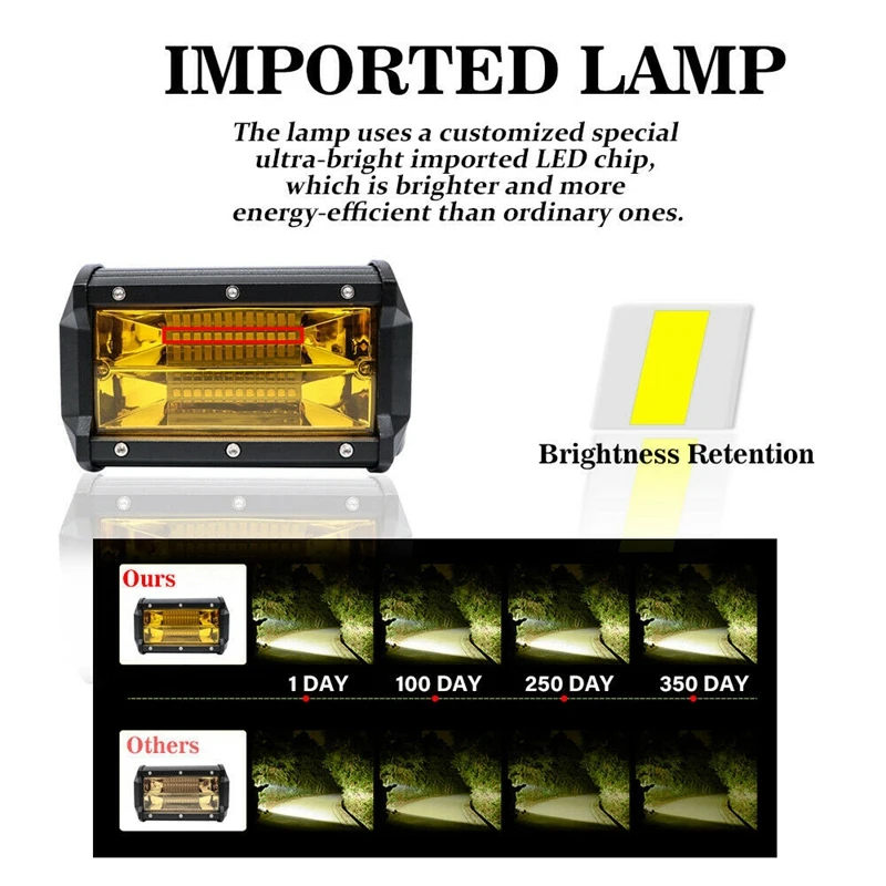 [Супер яркая] светодиодная оптическая система, проектный светильник на экстремальное расстояние через темное и сохраняет яркий окружающий светильник, более широкий дальномер. 5 дюймов 72 Вт желтый светодиодный светильник, бар обновляет их отражатель чашки, широкая Светоотражающая пластина обеспечивает многоугольное преломление.