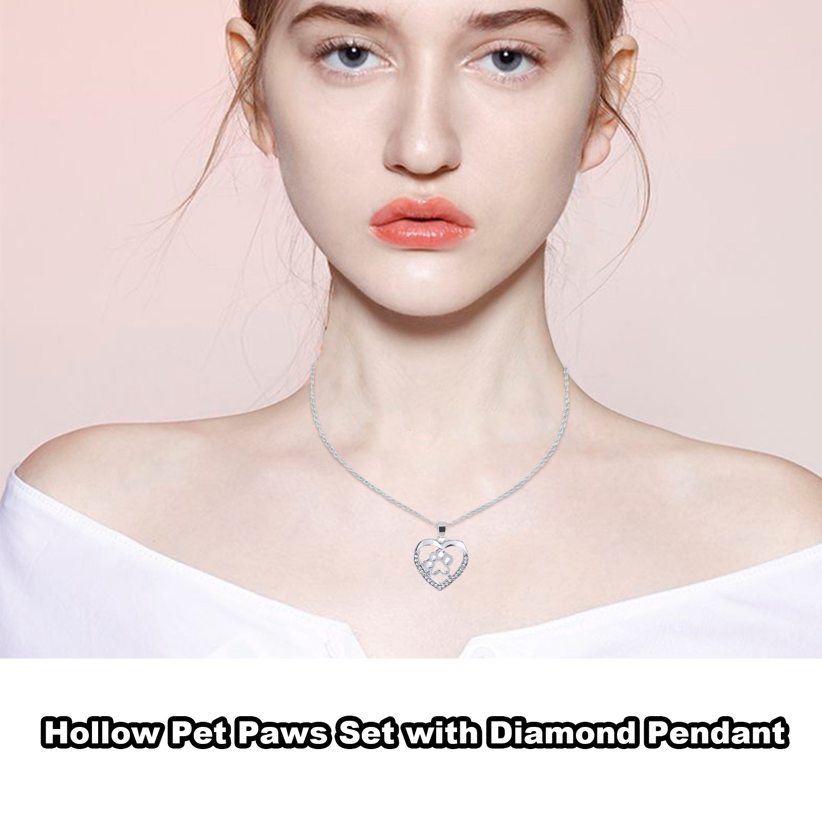 Ажурное животное ожерелье с подвеской в виде собачьей лапки с алмазной подвеской в виде ключицы