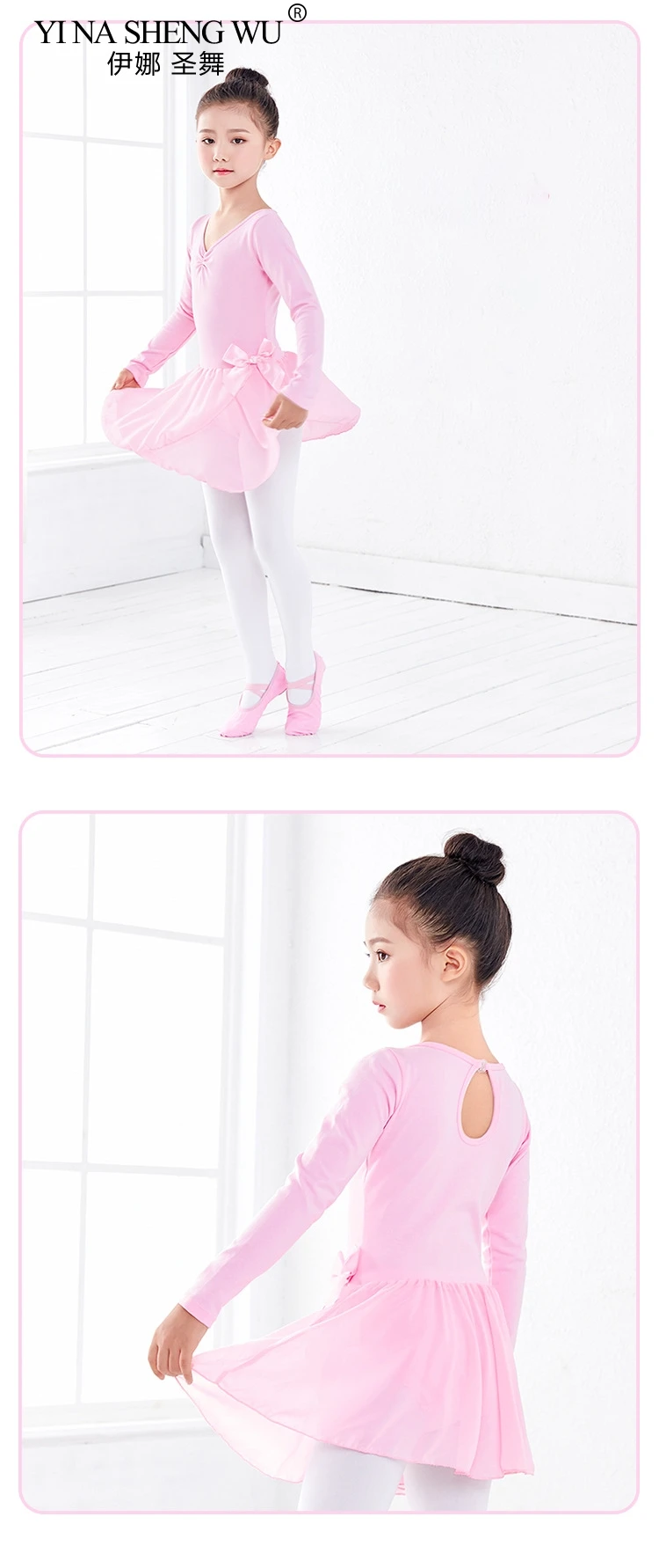 Летние Детские Балетные гимнастические леотарды для девочек, платье для выступлений с длинным/коротким рукавом, танцевальное трико, Одежда для танцев с шифоновым галстуком